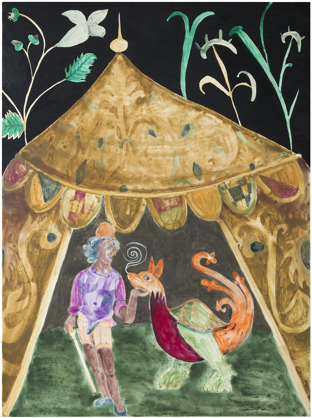 Aki Turunen’s paintings are based on a combination of intuitive, subconscious imagery and a deep knowledge of art history. Turunen’s interest in tradition causes the artist to position himself strongly in the continuum both in his choices of materials and the imagery he deals with. By shaping traditional tools such as tempera painting to his own use and combining a personal narrative to images drawn from history, Turunen approaches a shared human experience and an omnipresent history.
