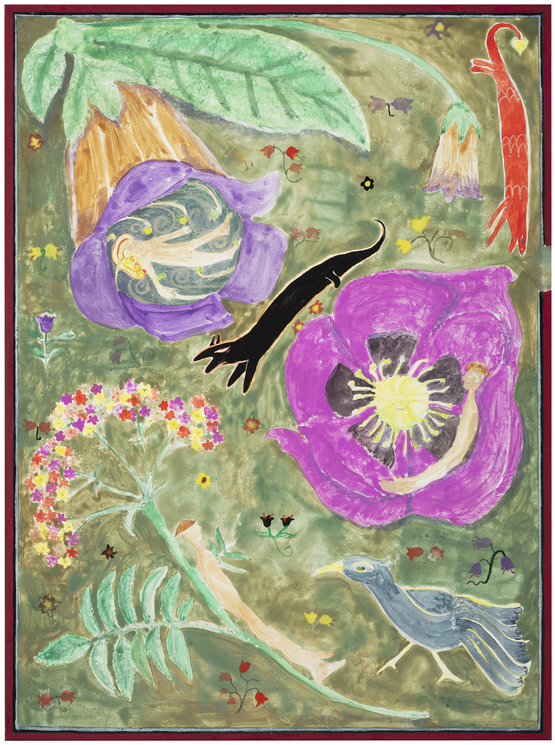 tea and japanese watercolor on paper, framed, museum glass