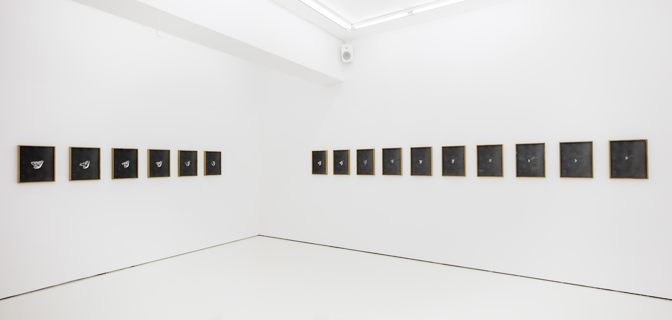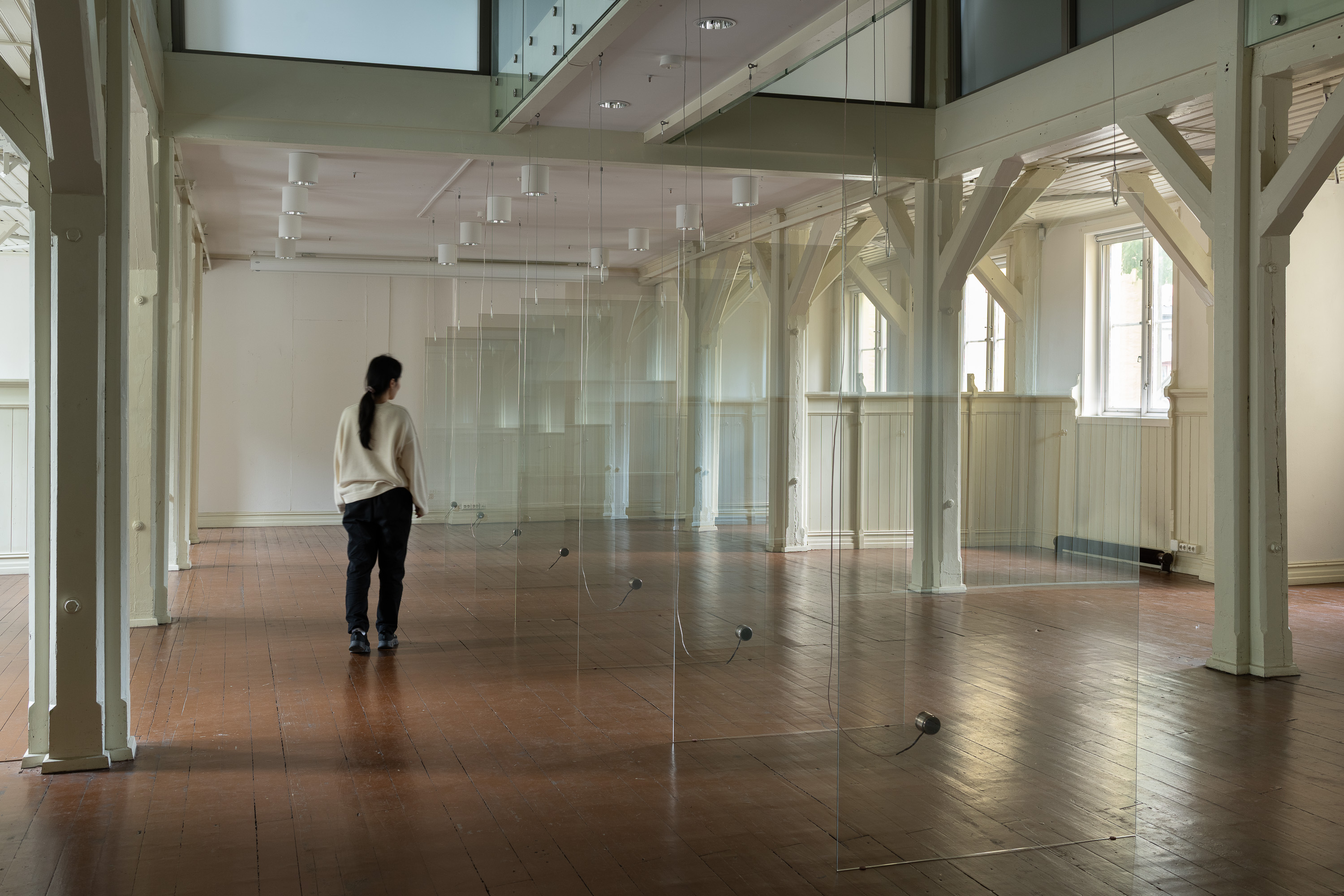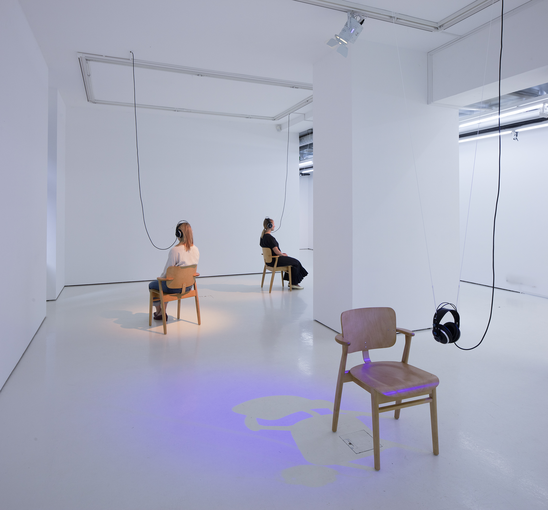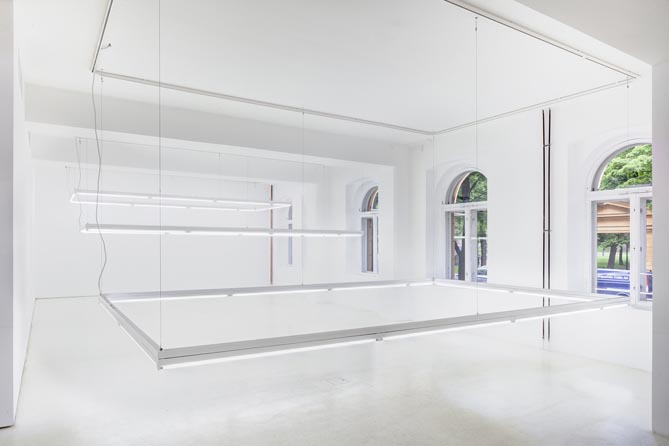 A space divided by its existing lights – Installation view from Helsinki Contemporary