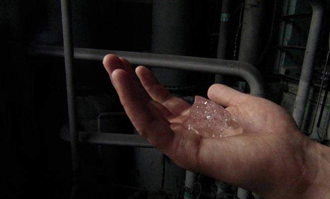 semi-reflective glass, transducer speakers, sound, dur. 12 min.