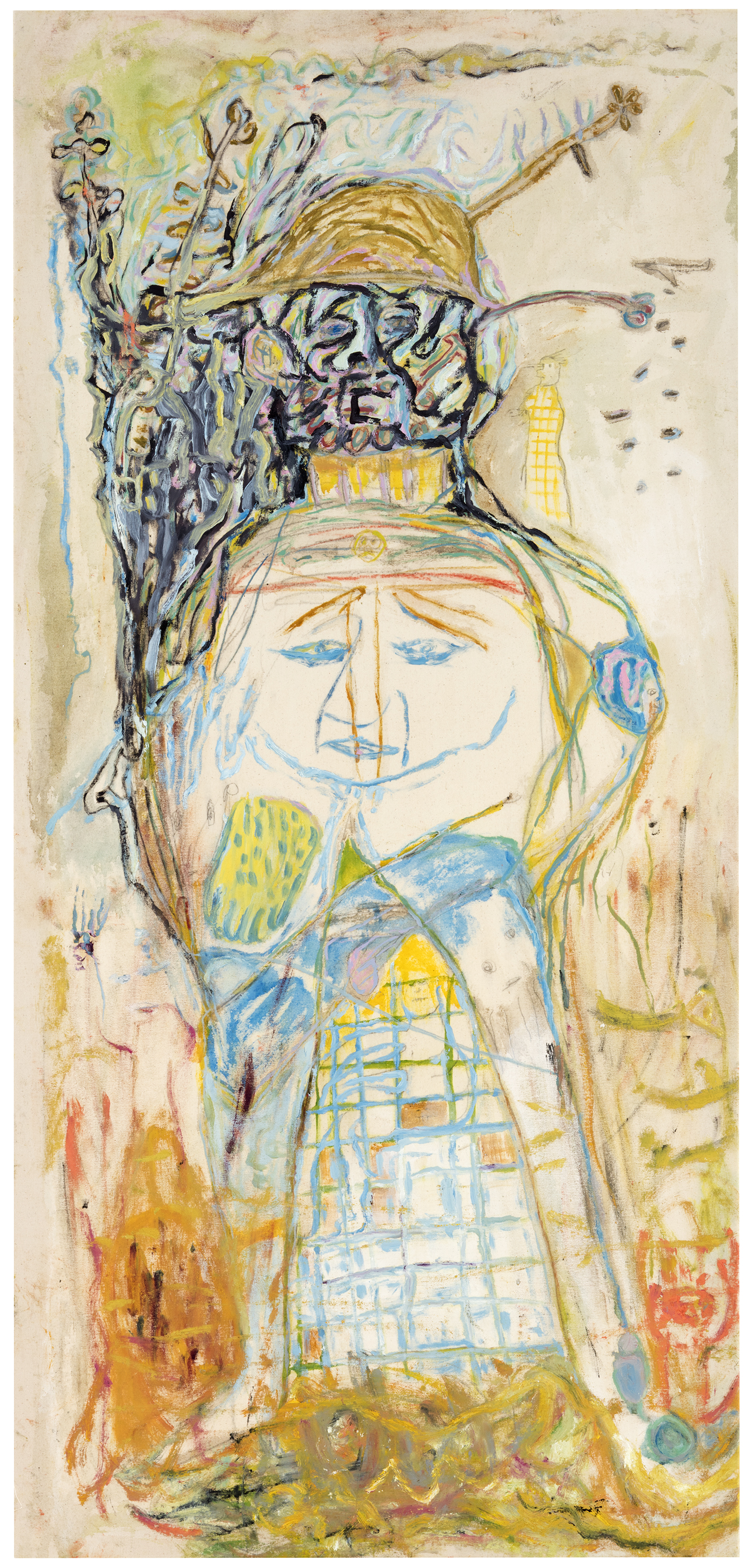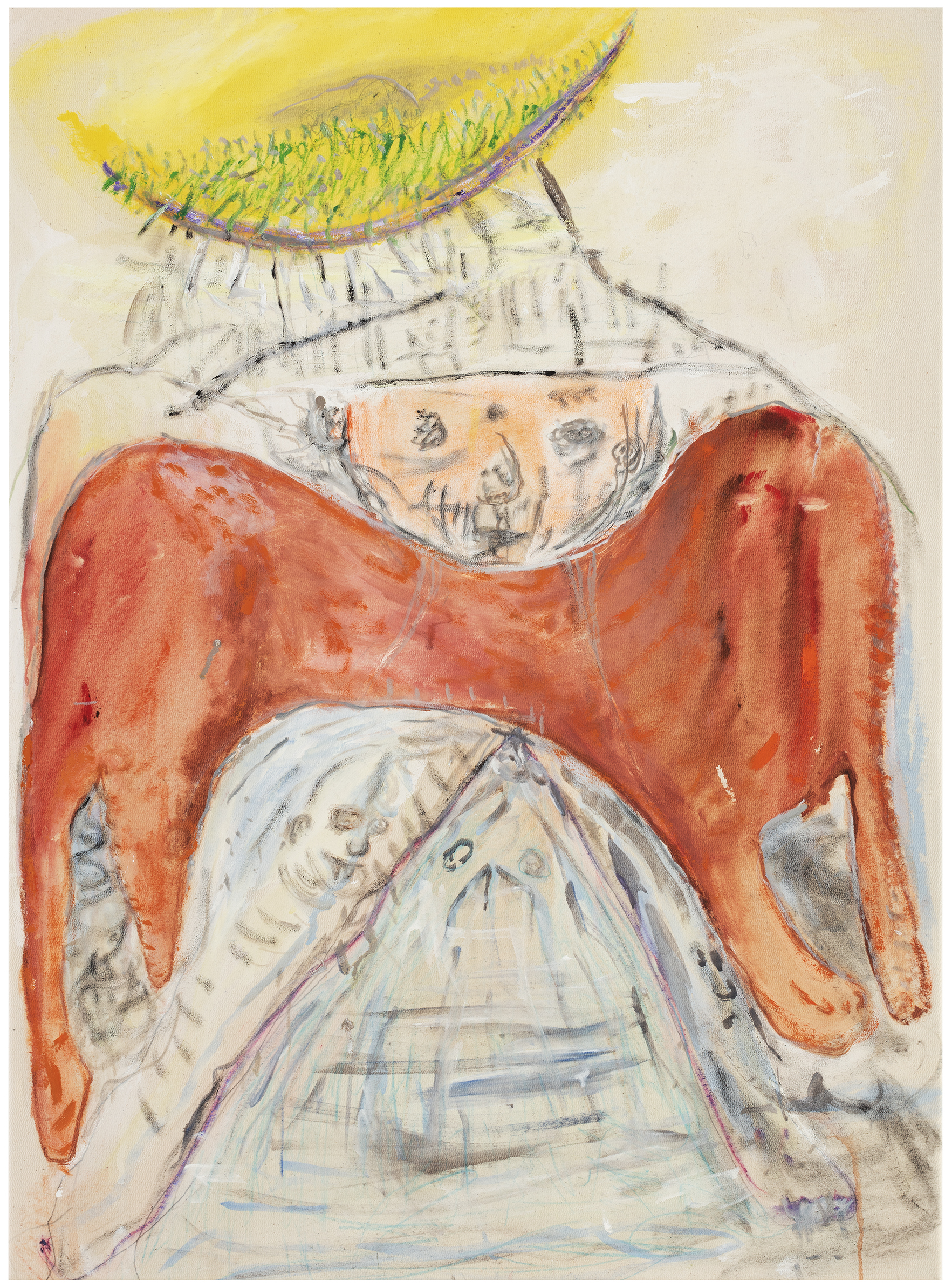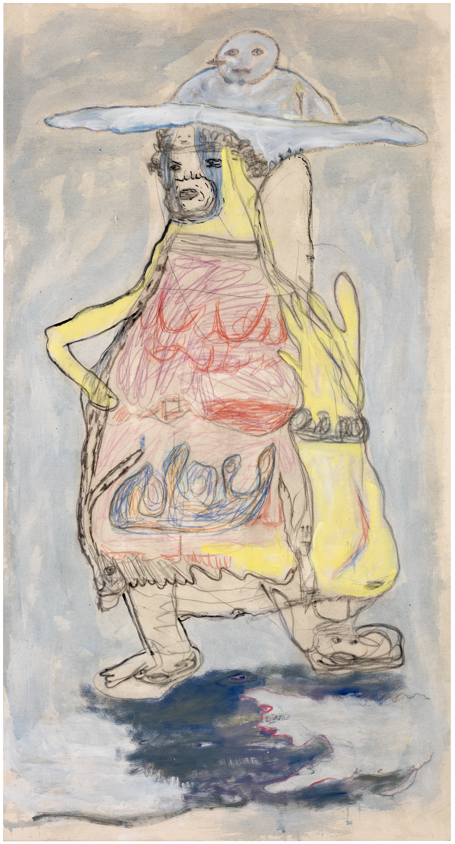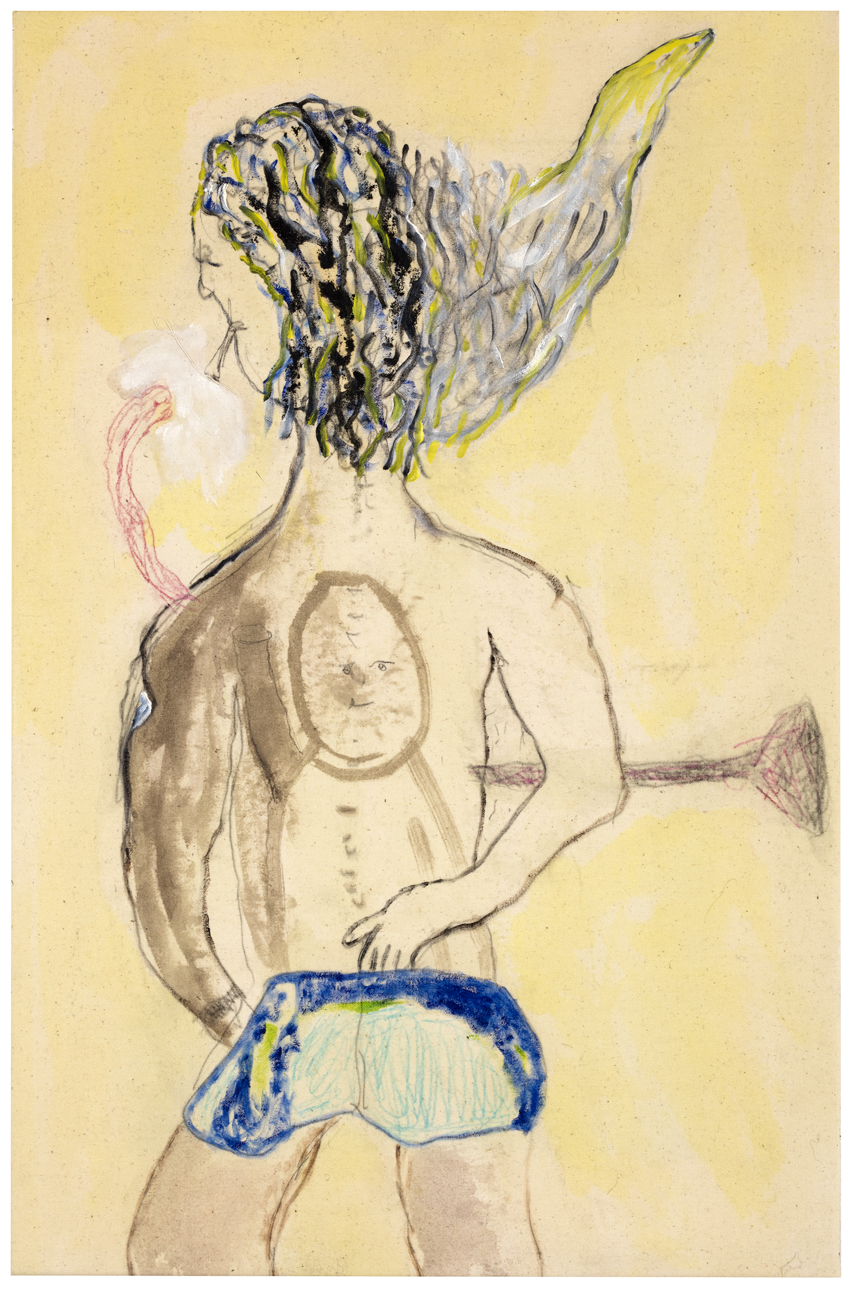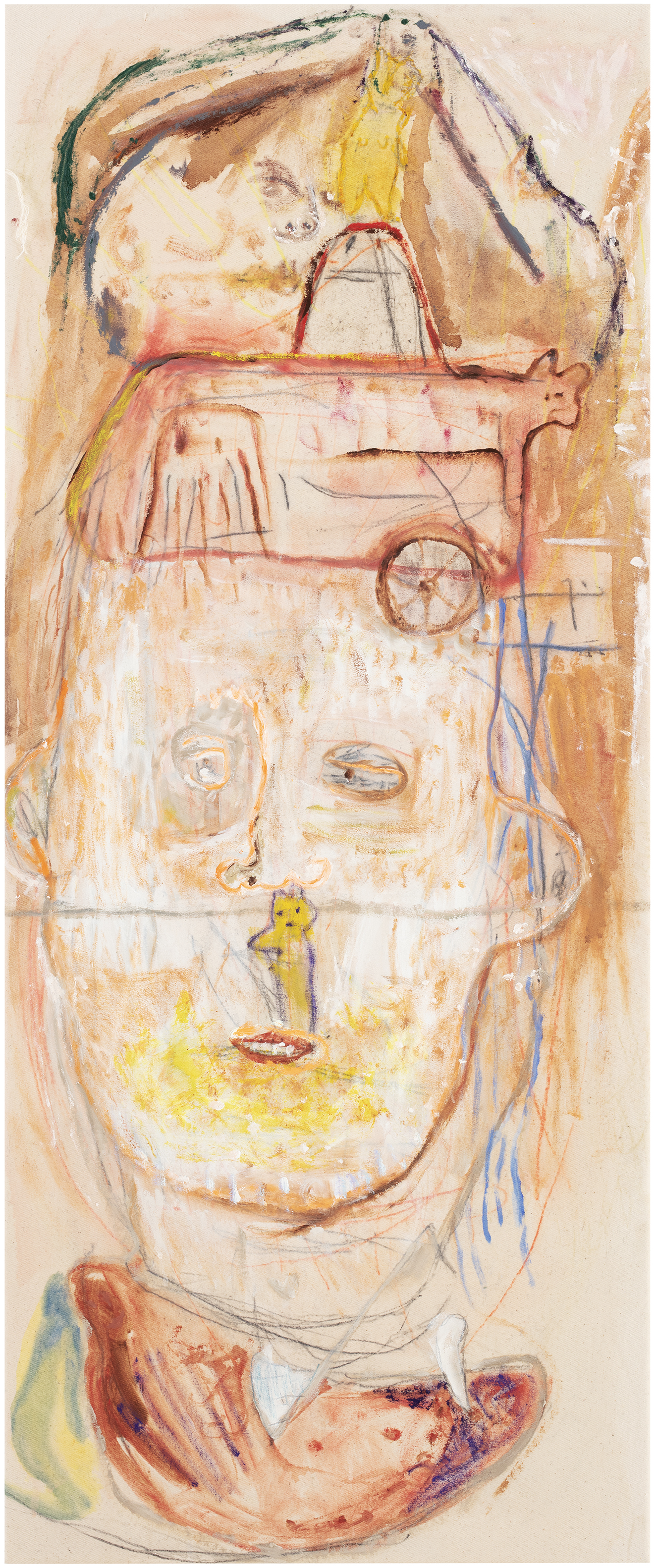 crayon, graphite, ink and oil on canvas