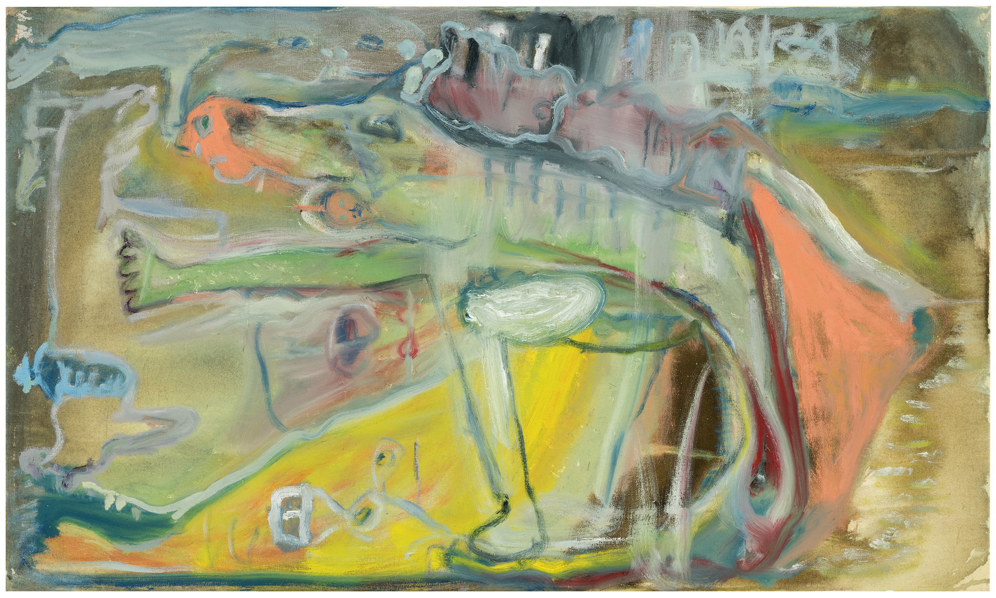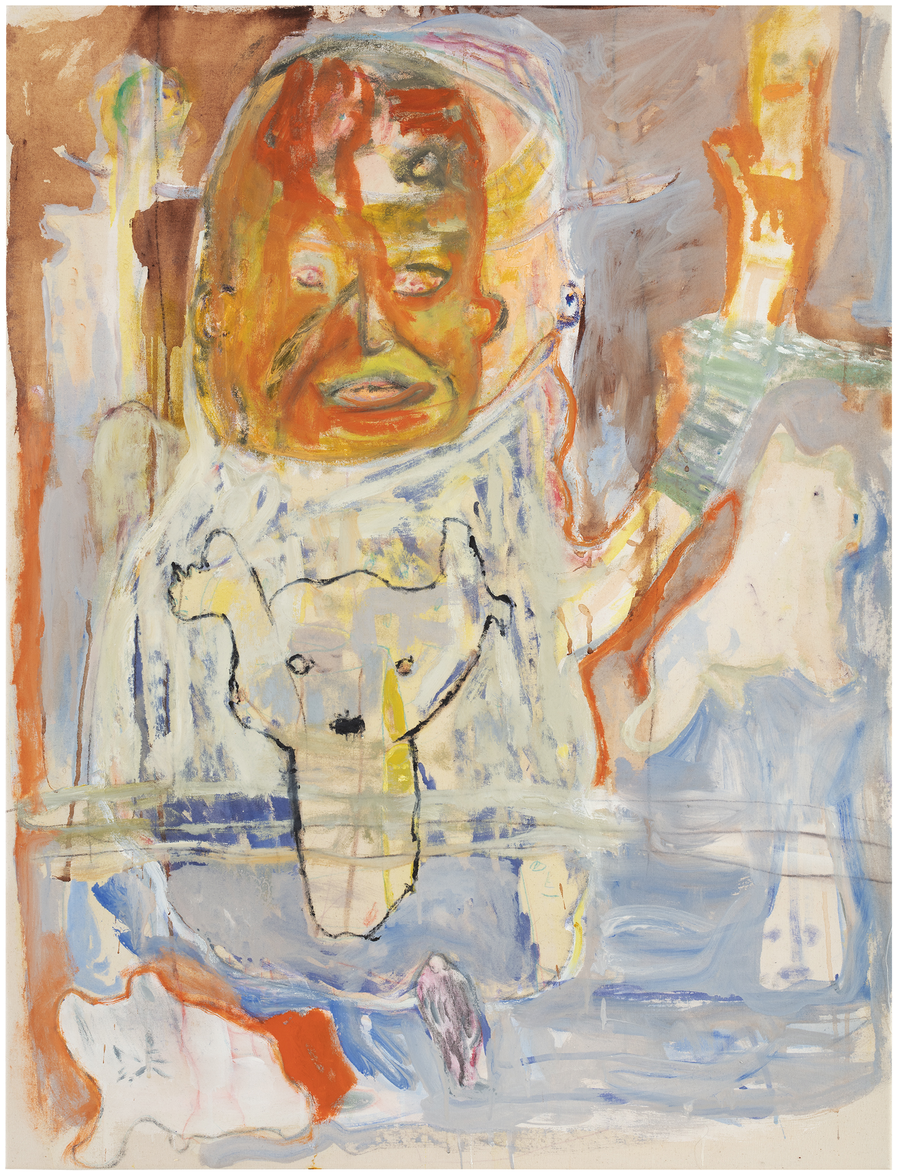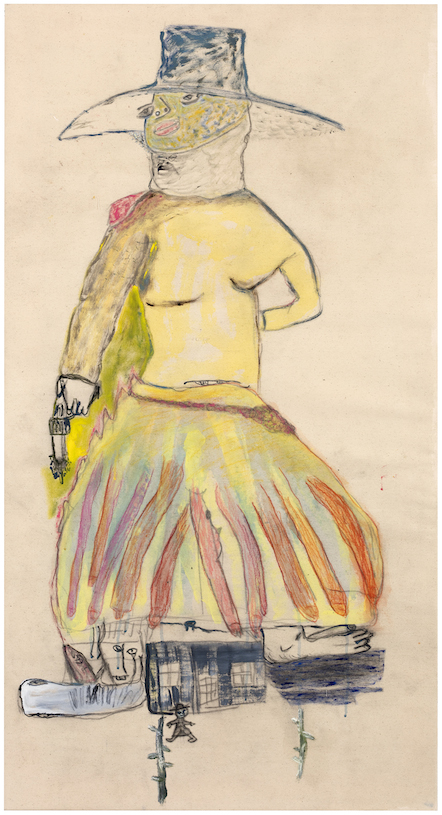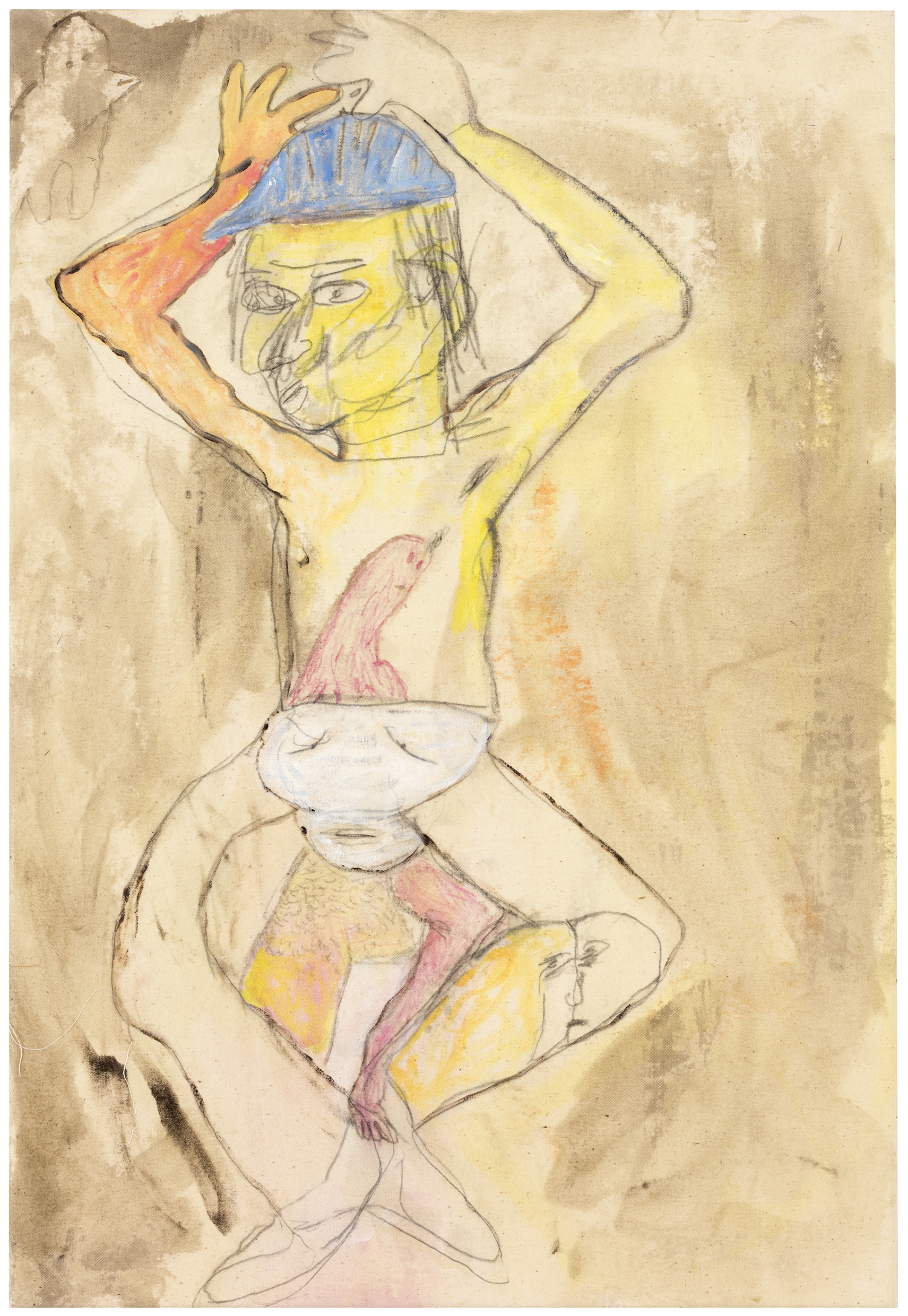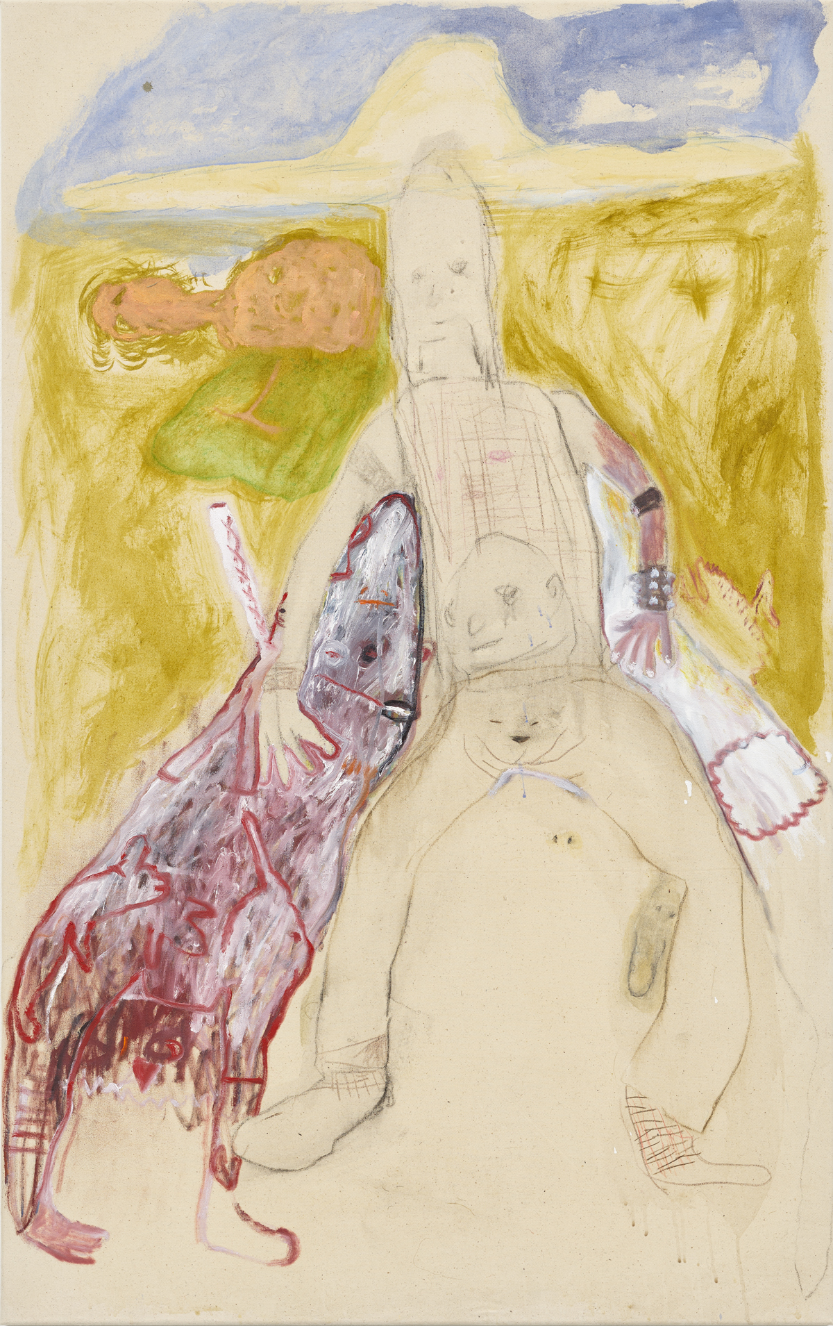 crayon, graphite, ink and oil on canvas