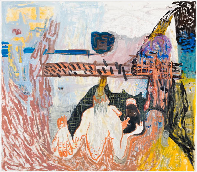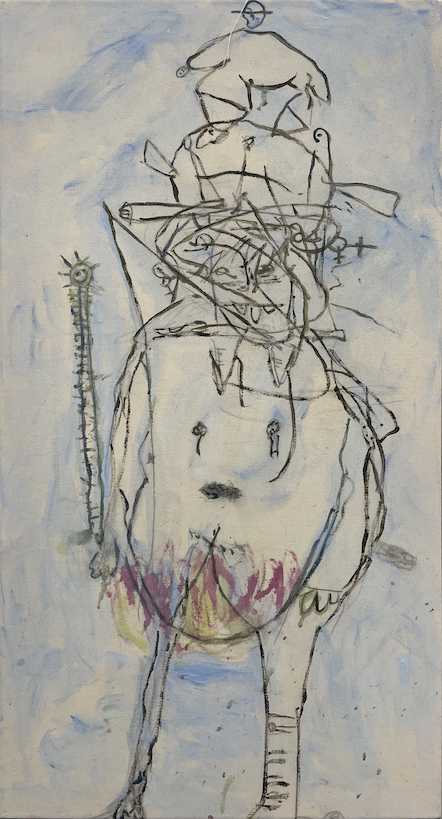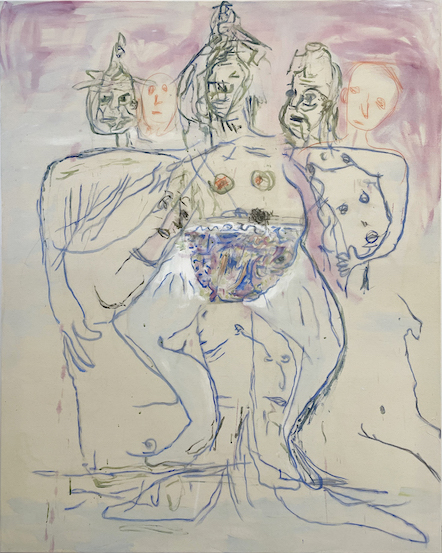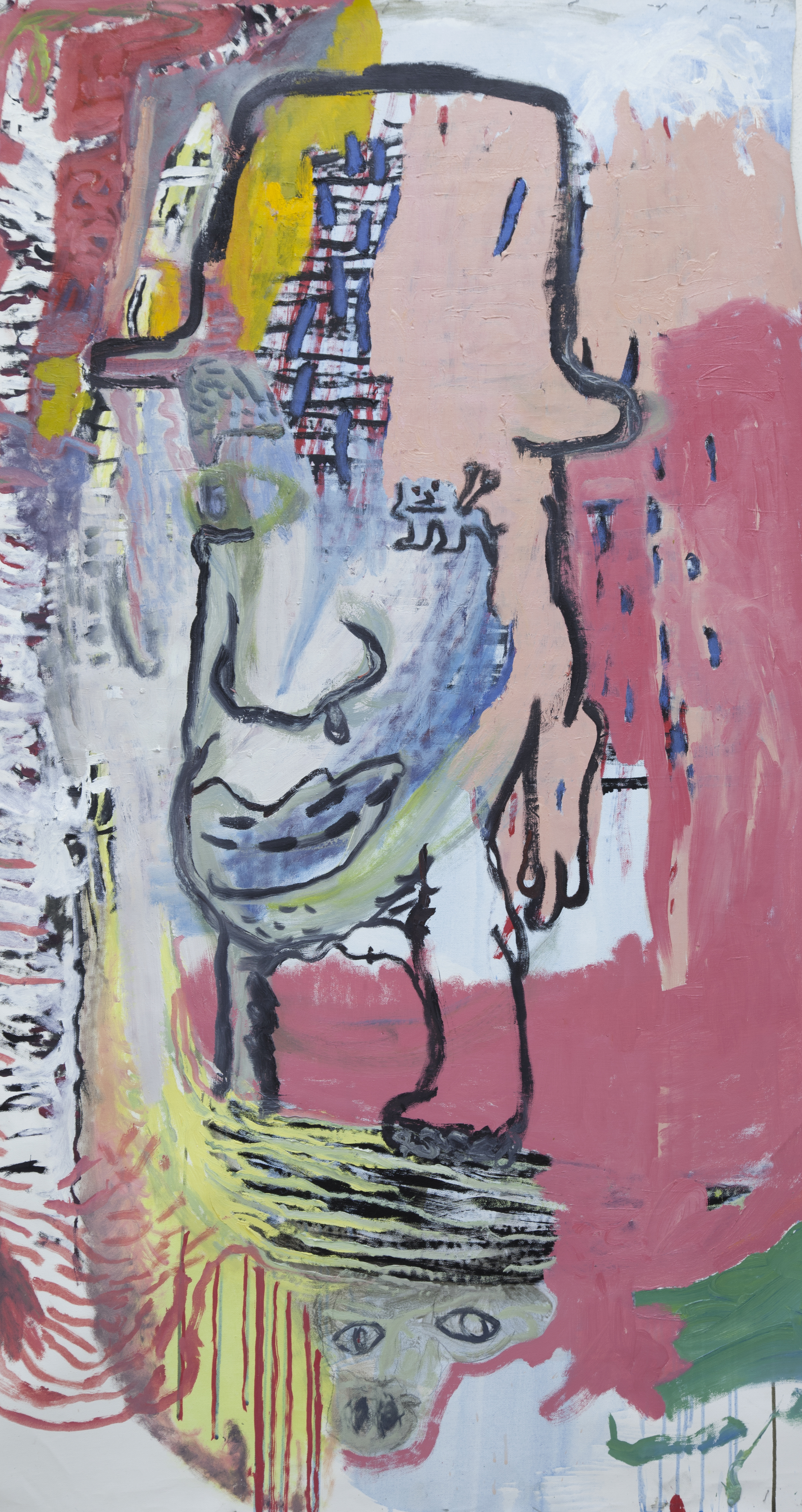 acrylic, ink and oil on canvas