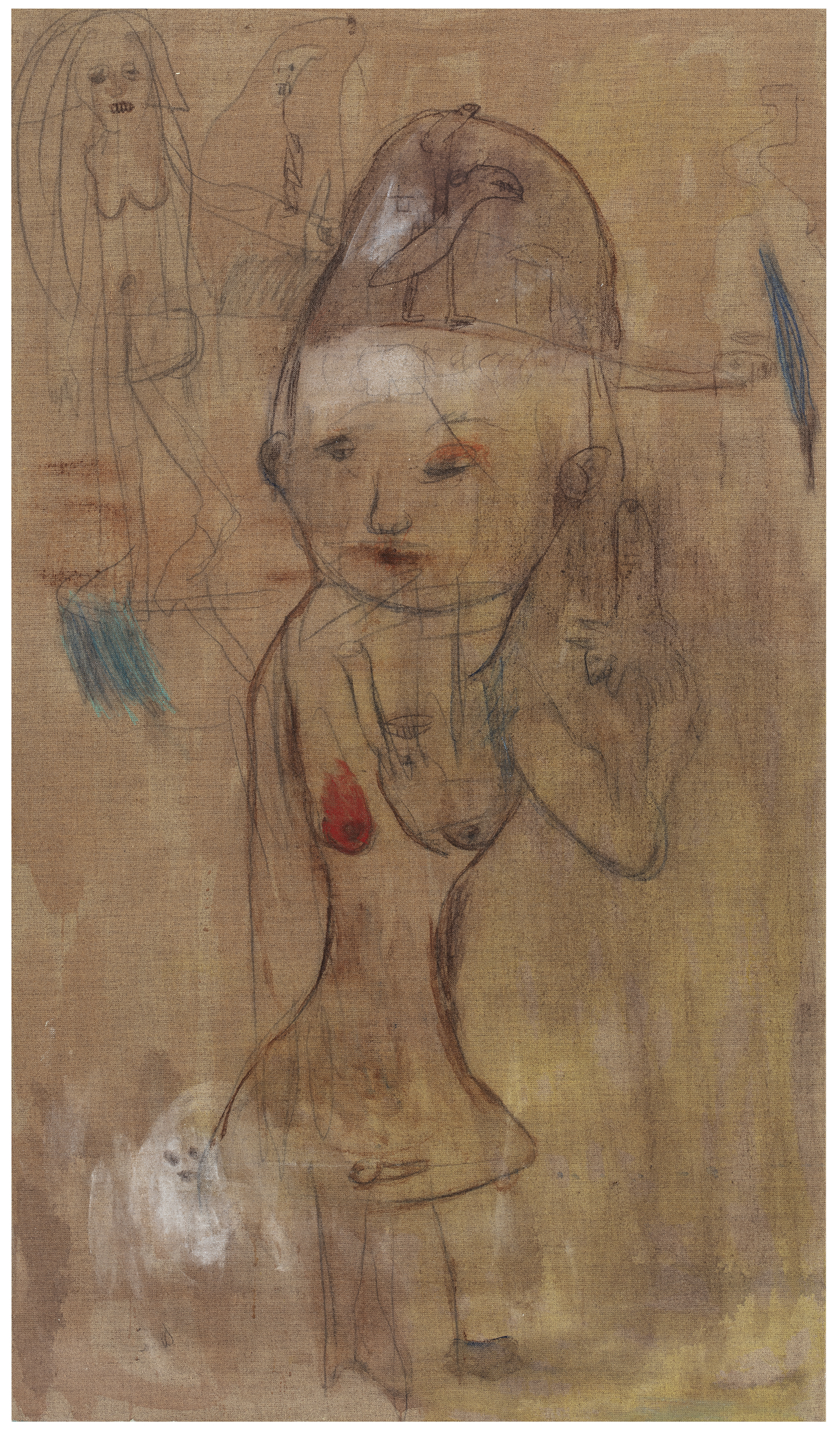 graphite, aquarelle and oil on canvas
