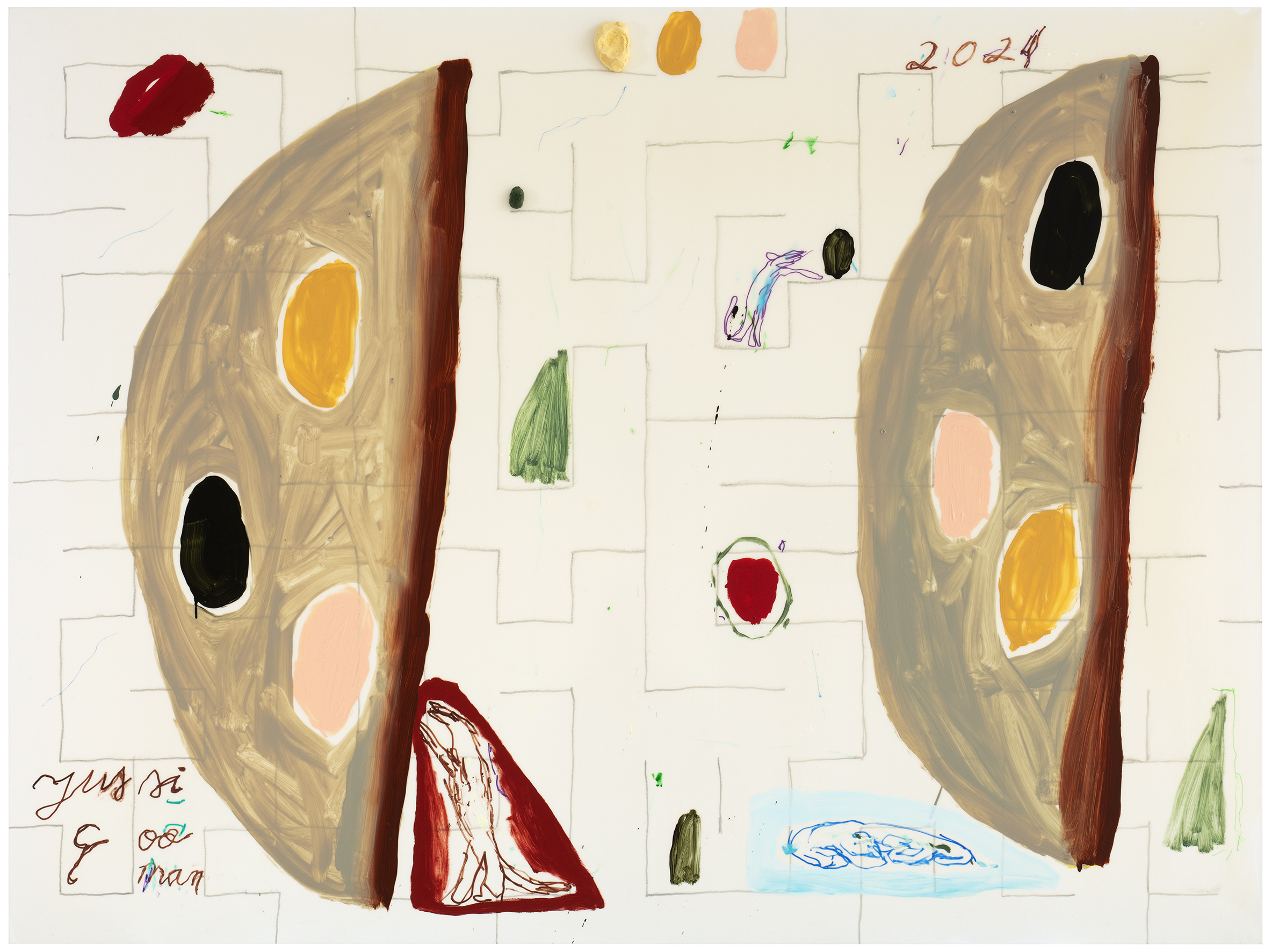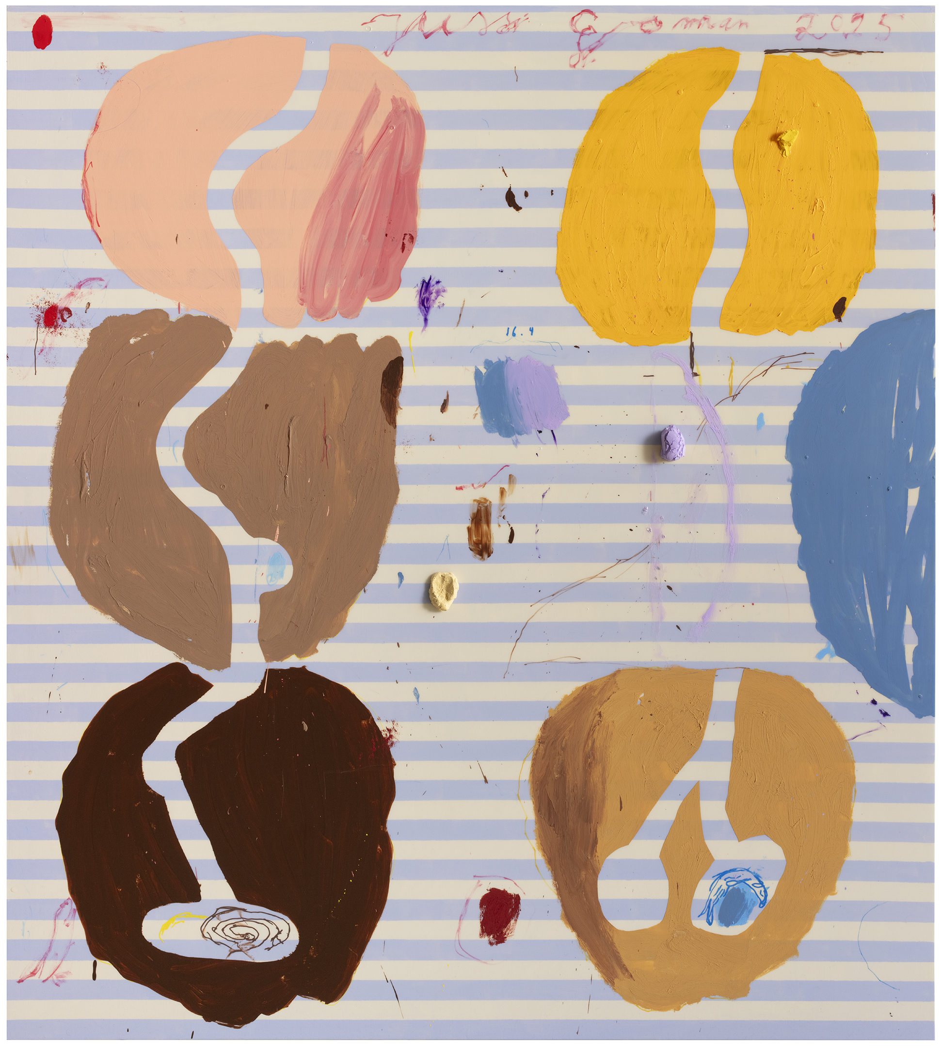 Goman is known for his colorful acrylic paintings executed with broad brushstrokes, combining humor, movement, and lightness. The painterly elements of his works and the surprising visual narratives create a rich and multi-layered ensemble. Goman's oeuvre also reveals a profound interest in art history, which is evident in his ability to reinterpret and playfully break the conventions of painting. Recently, Goman has expanded his expression to ceramic sculptures, bringing the world of his paintings into a new dimension.