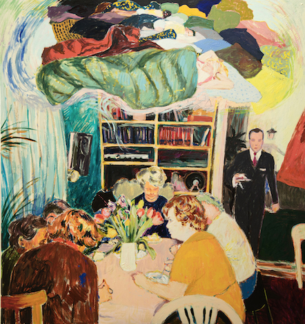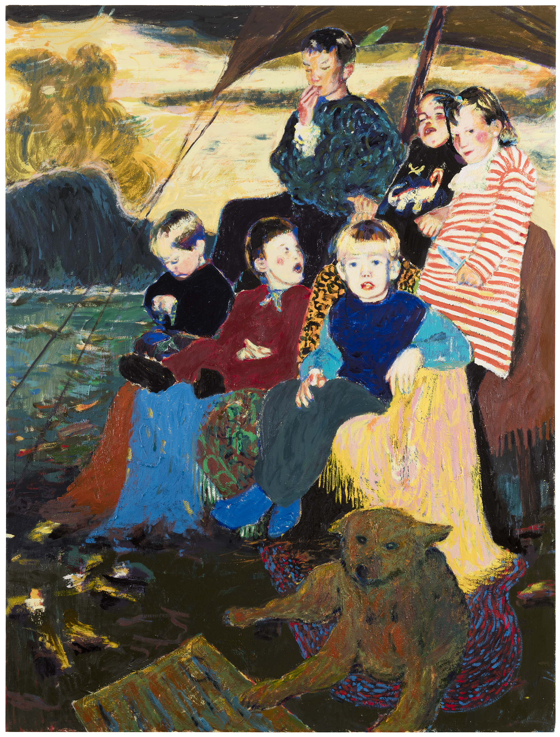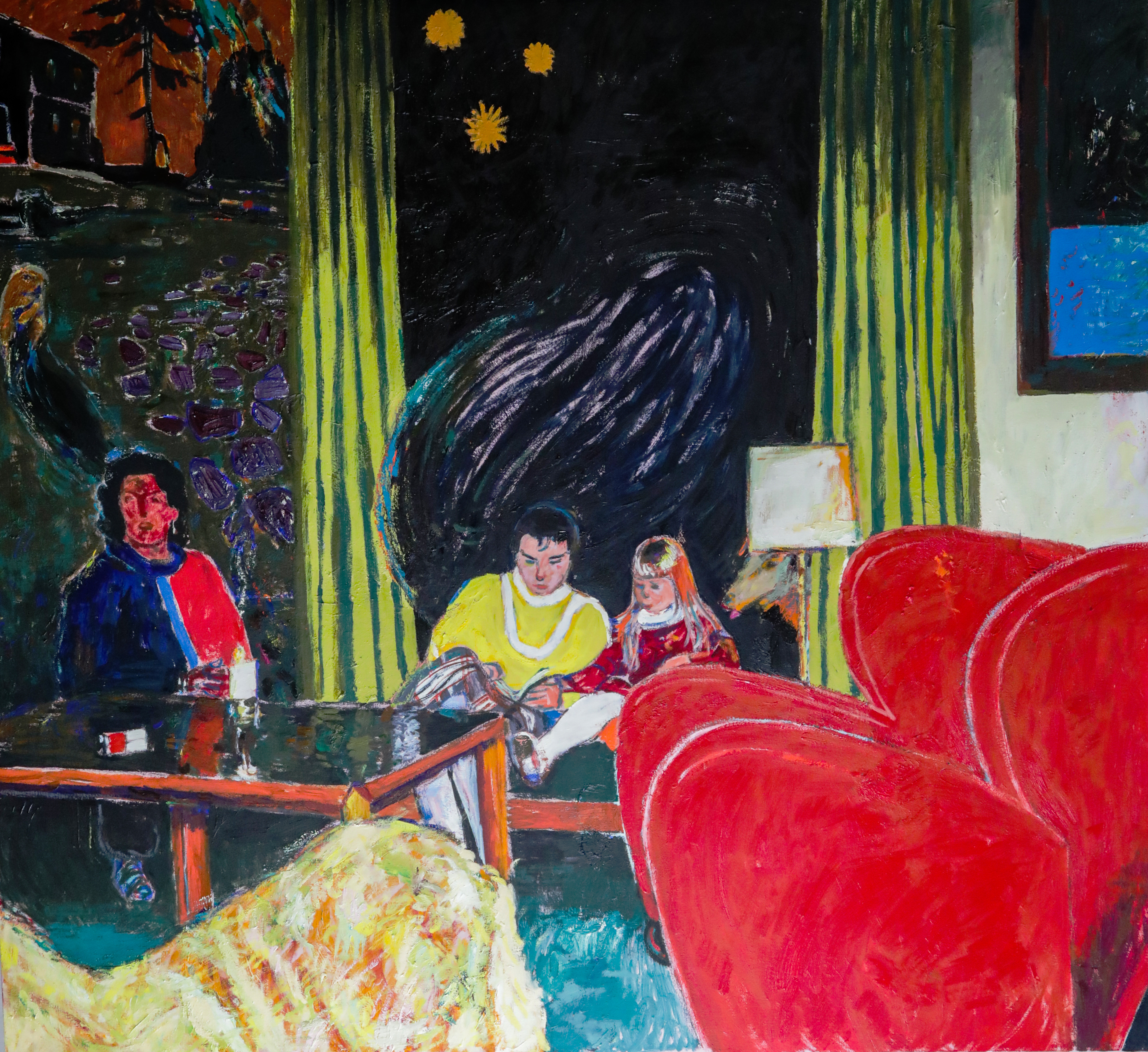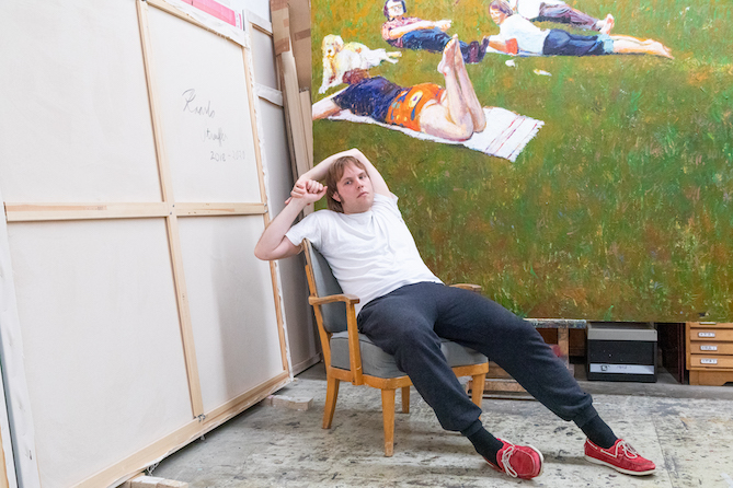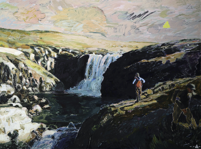 Stauffer’s paintings, created in the alternation of rich, layered surfaces and light, airy strokes, depict simultaneously something familiar and something fantastical, strange and uncanny. Stauffer’s works are heavily influenced by art history, literature and philosophy. Through these inspirations, his skillful use of paint and colours and his treatment of landscape and casts of characters Stauffer creates his own unique world and vocabulary of painting.