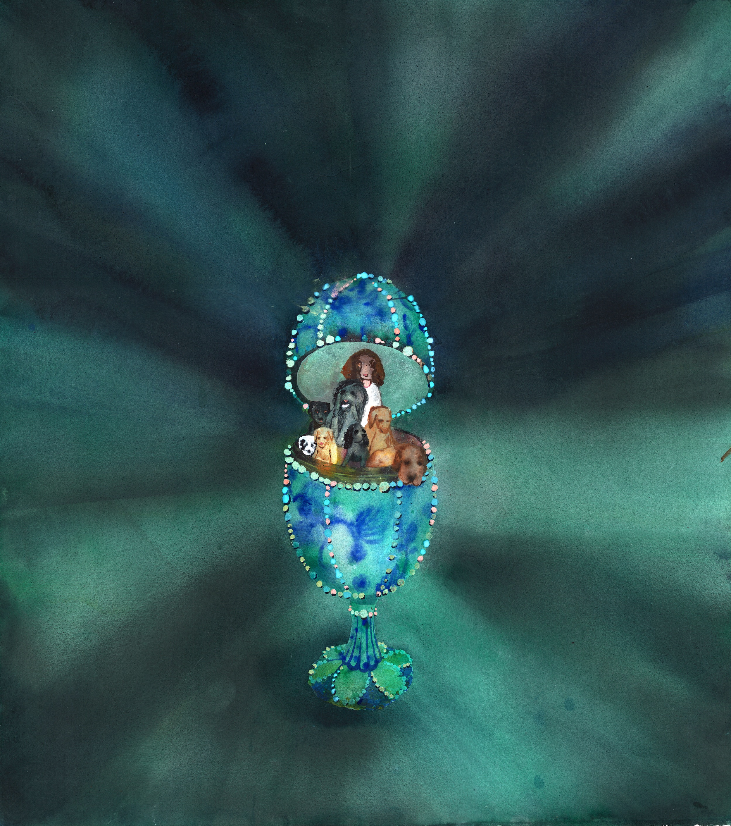 watercolour and gouache on paper, framed with museum glass