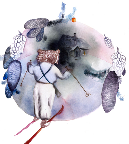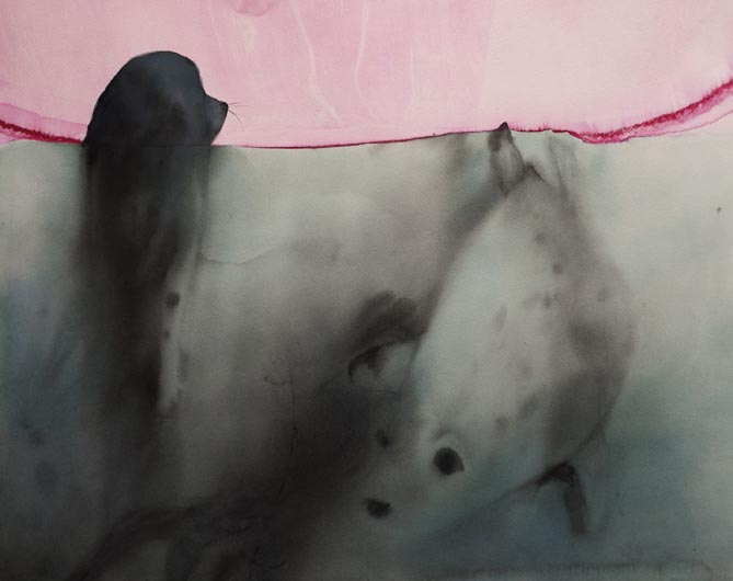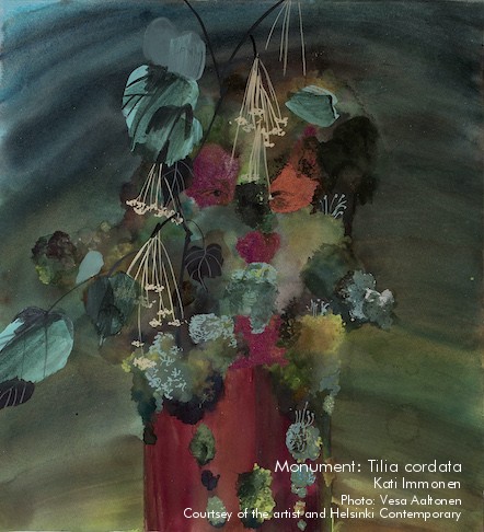 Kati Immonen is reinventing watercolour painting as a medium for contemporary art. Immonen recognizes the cultural baggage carried by her medium, the watercolour, as being something light, effortless and superficial, and turns this to her own benefit. She has a powerful way of expressing ideas and stories using highly charged subject matter, such as war and ecological problems. The relationships between human, the built environment and nature in its steady, silent strength and diversity has long interested the artist. There is often an air of warm humour in her depictions of these complicated, ever changing connections.