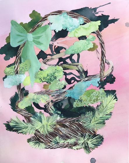 watercolor and acrylic on paper, framed, museum glass