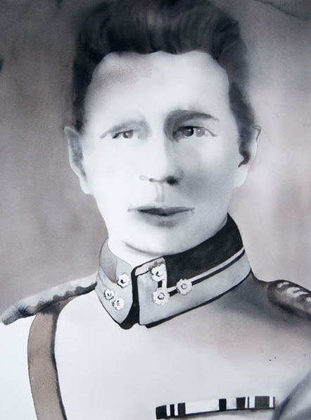 watercolour and ink on paper, framed, museum glass