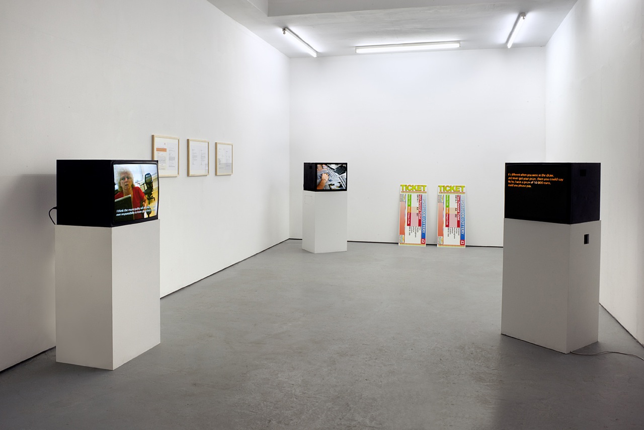 Pilvi Takala uses performative interventions as a means to process social structures and question the normative rules and truths of our behaviour in different cultural contexts. Her works emerge out of research in a certain community and then reach out to a wider audience through different mediums, e.g. videos. Her works clearly show that it is often possible to learn about the implicit rules of a social situation only by its disruption. She quotes and stretches the limits of different genres, including documentary making and performance.