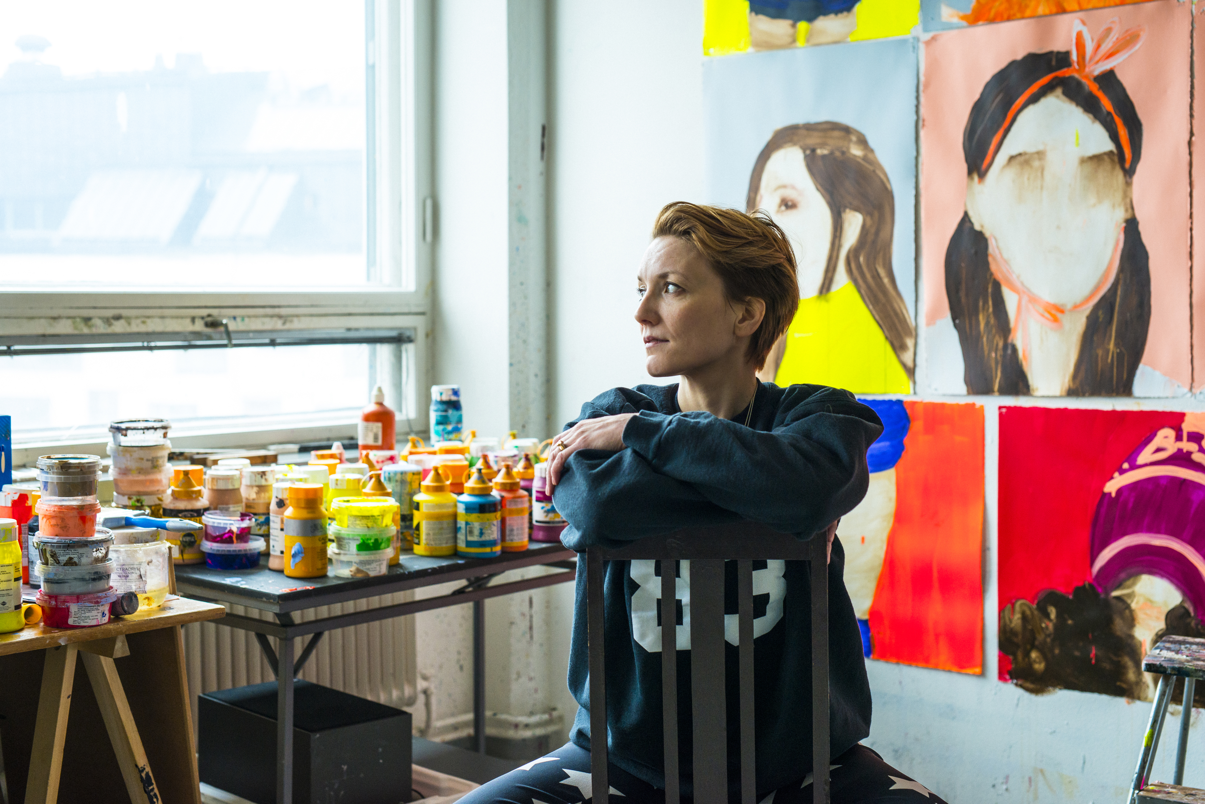 Rauha Mäkilä is known for her colourful paintings depicting everyday events that are inspired by her own life and family. In recent years, Mäkilä has also reflected on her own status and identity as an artist. Her works are about being human, being an artist and being together. Mäkilä draws the themes of her works from her own experiences and life, showing how the immediate and the everyday are valuable things, worthy of painting.
