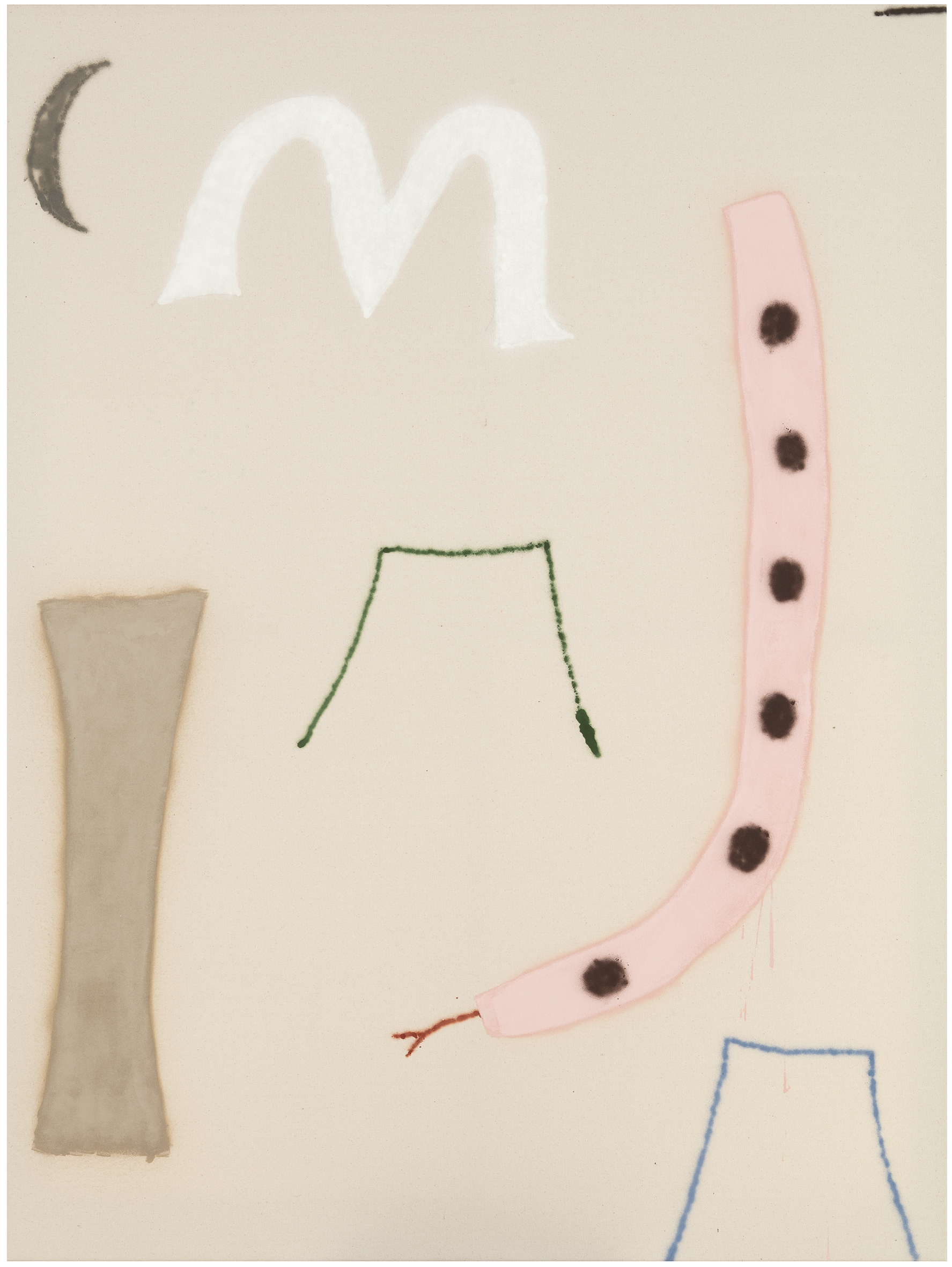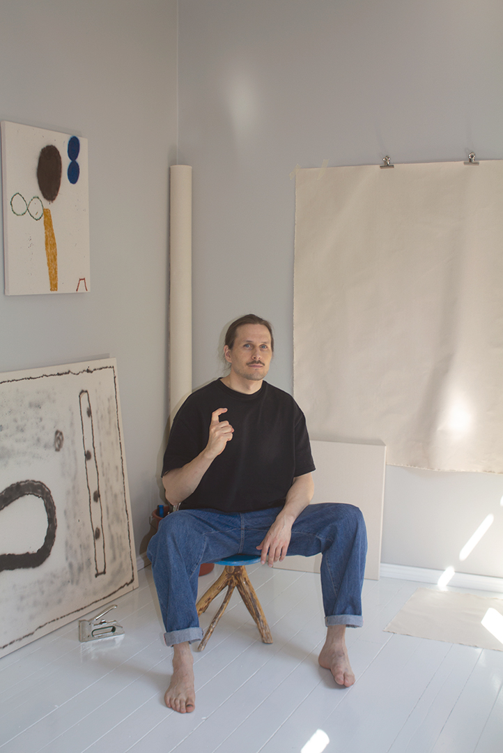 Santeri Lehto (b. 1982, Lappeenranta, Finland) uses a unique minimalism and analytical naivety as his stylistic tools. At first the viewer notices the child-like visual simplicity of his paintings, but immersion in the symbols in the works reveals their different, almost paradoxical nature. His works are at once both direct and delicate, as subtle as poems, improvised pieces of music, or randomly doodled drawings. His paintings often present simple forms that refer to everyday life. The surface-level simplicity of the works reflects the mystery of everyday life and existence. Perhaps the important thing in Lehto's works is not what one sees, but what one often does not see.