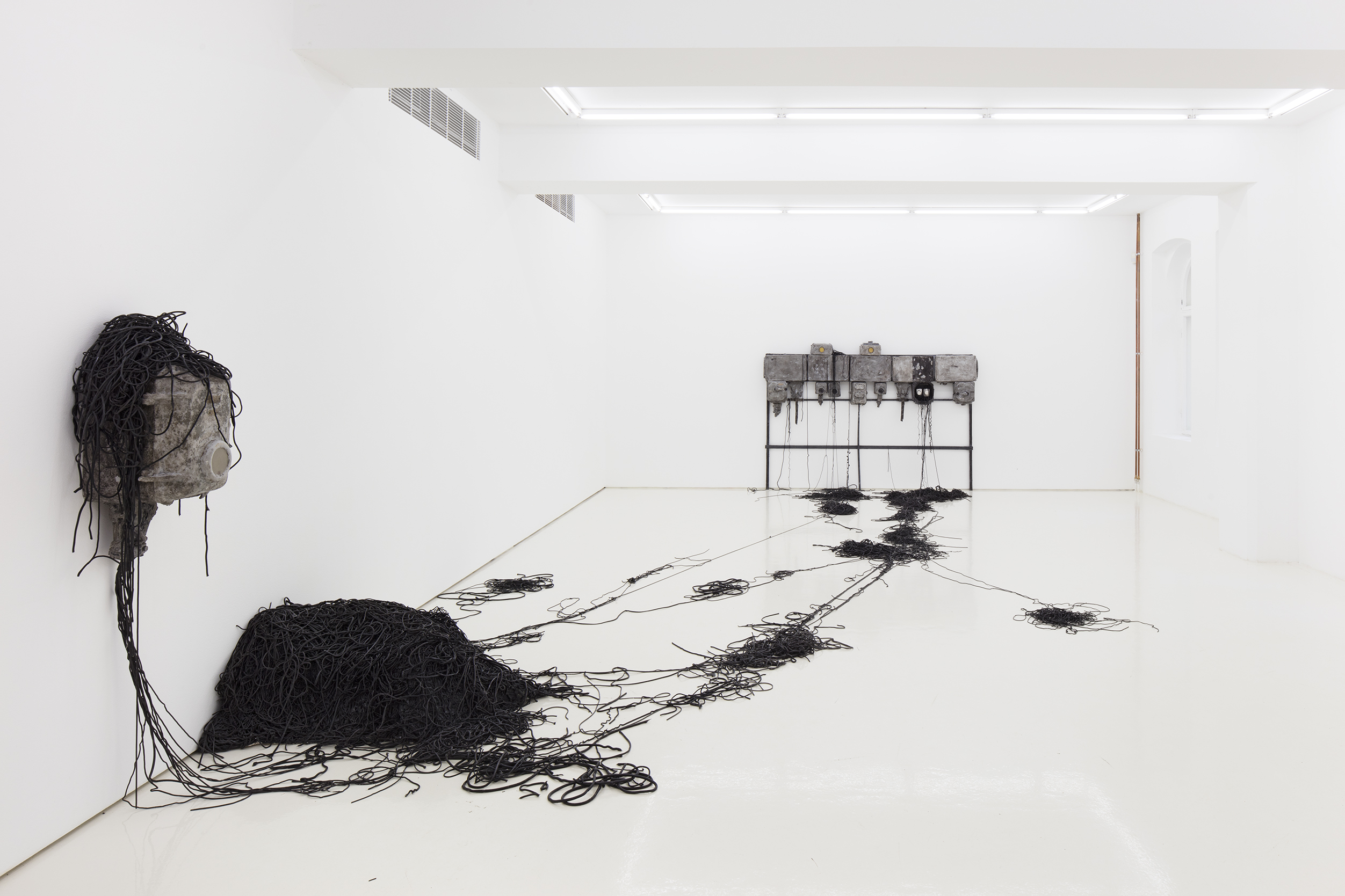 Roland Persson is known for his silicone sculptures contemplating the relationship between human and nature, the way we perceive nature and implement a variety of loaded meanings to it. In his new exhibition, the Swedish artist tackles a different set of starting points – different, but in a natural continuation to the themes he has studied in his past exhibitions at the gallery. Where Persson has previously used plants and animals as the source of his sculptures and drawings, the new set of works is modeled after elements from a very human environment, evoking memories or nostalgia of the modern world: industrial machinery, vases, electrical cabinets…