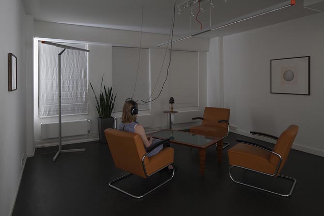 The exhibition carries on organically in the gallery’s office spaces. The whole thing combines and articulates the public and the private, space that is open to everyone and space restricted to the personal. The office space is experienced alone, just one viewer at a time. The space is both strange and familiar – amenable to a differentiated experience, rewarding. The space contains its own sound work, plus drawings and video.