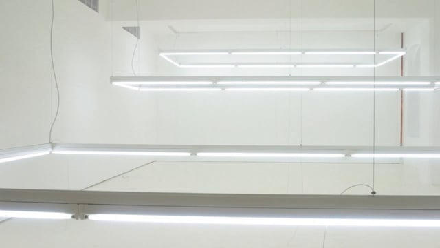 A space divided by its existing lights – Installation view from Helsinki Contemporary