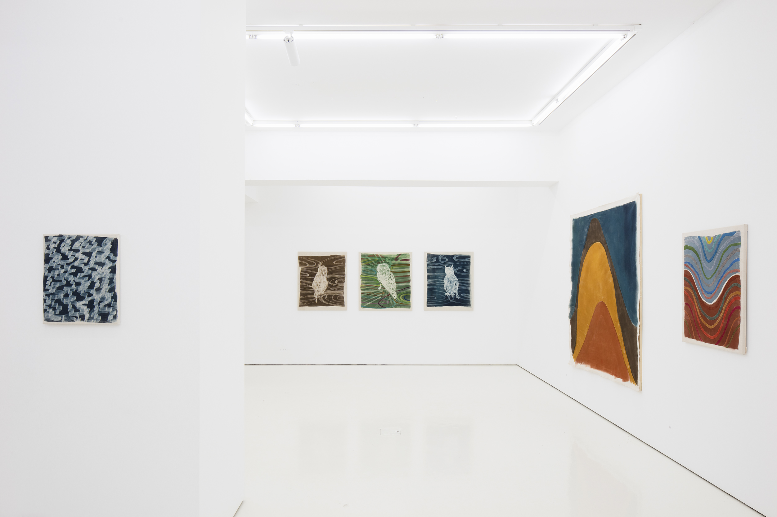 By wiping and washing away, simplifying layer by layer, Lampenius passes through her own experience into a shared one, and on into the viewer’s private perceptions. In these works we feel rather than see places, natural phenomena and familiar sensations that cannot be put into words. In the On the Beach series, which depicts the meeting of land and sea, every viewer can find a familiar sensation of shore and water, everyone can identify with the experience of darkness in the works in the Black Rainbow series. The figures of owls are a theme running through the exhibition and serve, as it were, as message bearers across the interfaces that recur in the works – between the here and now and the beyond, between land and sea, between humankind and nature. “We inevitably bring our own memory images to a painting and construct a new memory image out of the work, a meaning for the present moment. In a painting we can utilize recognizability or attempt to obliterate it. For me this is an interesting property of painting,” Lampenius says.