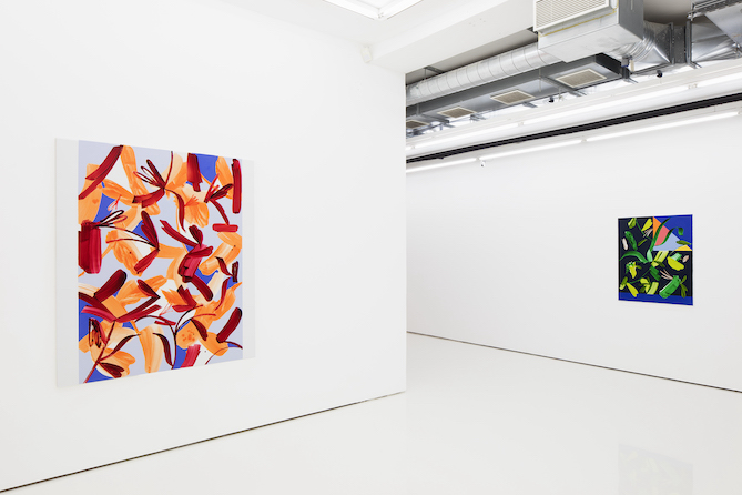 Being in a state of constant flux – experiencing and accepting it – is one of Hautamäki’s premises behind the exhibition. The present is fleeting, and not even painting can catch this moment. “With every inhale and exhale, in a blink of an eye, the surrounding world and, at the same time, we humans, as individuals, are changing, whether we want it or not.” In the new paintings, movement is present as energy, growth, and whirling compositions of various elements. Hautamäki has stepped back from working in a series, and the change happens from one work to another.
