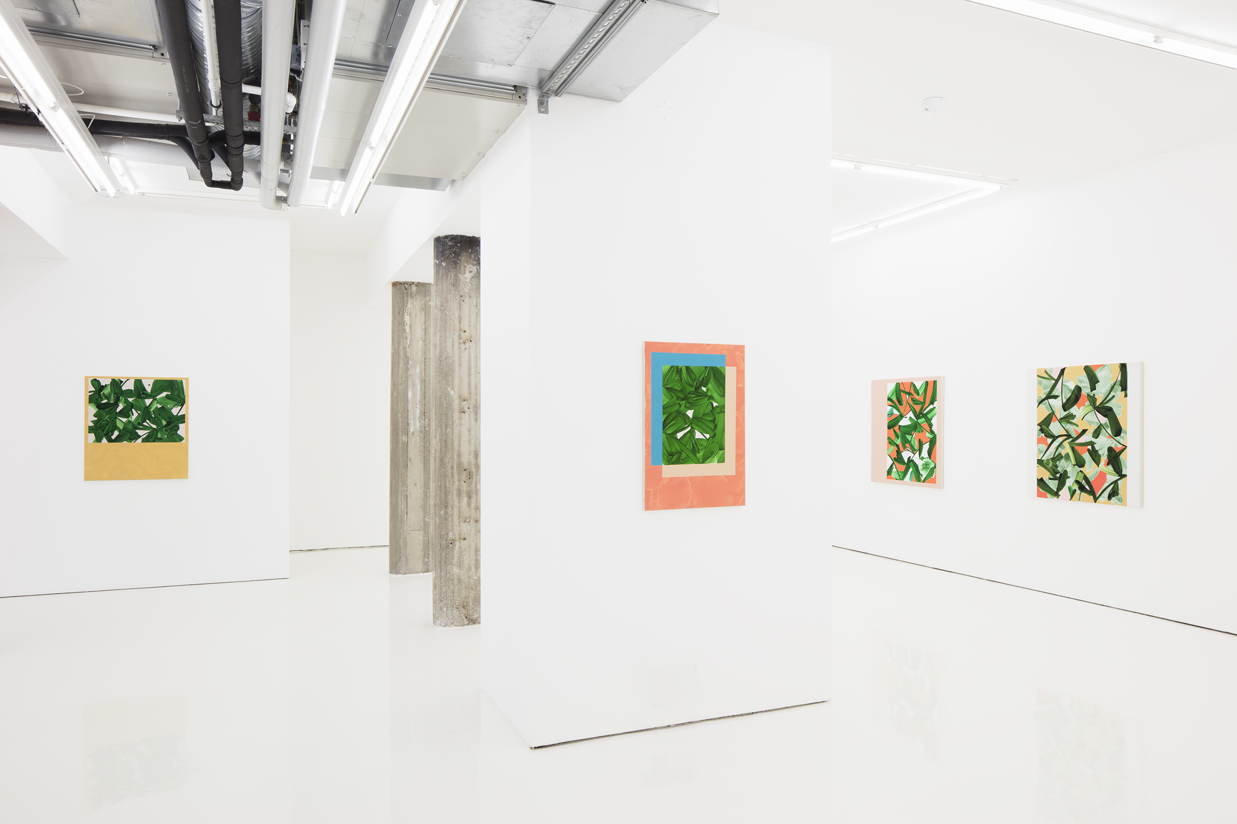 In the Flux exhibition, wild nature is positioned inside a frame as part of an urban environment. The body of work that will be on display at the gallery is simultaneously rambling and clear-cut. Of the elements seen in Hautamäki’s earlier works, geometric background forms, in particular, are now in the minority. Collage-like compositions, the contrast between organic and industrial, and flowing repetition of plant ornaments are still present in Hautamäki’s acrylic and oil paintings. This time, the works are more simplified and abstract than in his previous gallery exhibition, Spirit (2021).