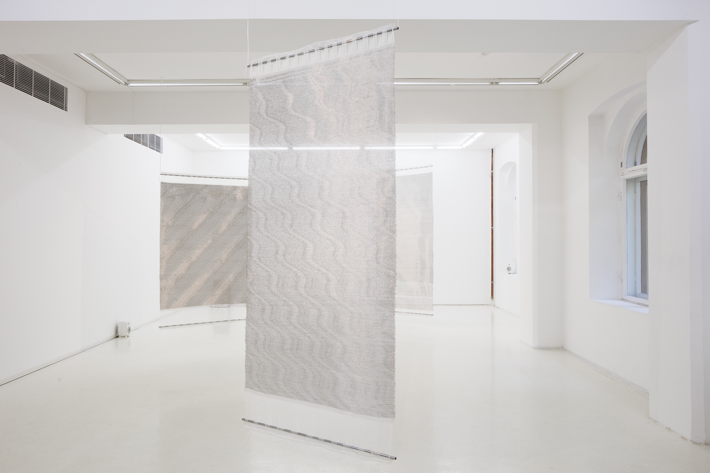 handwoven digital jacquard loom in cotton and steel wire, dimensions variable.