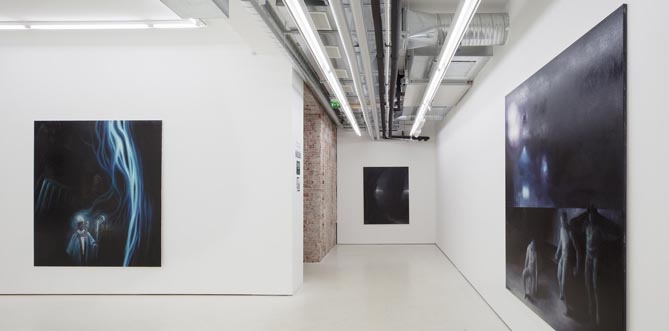 Ville Löppönen’s Ghosts is his third solo exhibition at the gallery. It creates and makes a direct, ever more compact and condensed continuation of Löppönen’s previous paintings and exhibitions: paintings that travel and traverse through an emphatically representational figure and situation towards the mysteries of existence, and to not always so minor grimnesses and grimaces. It is seeking things out, it is living with a great conundrum.