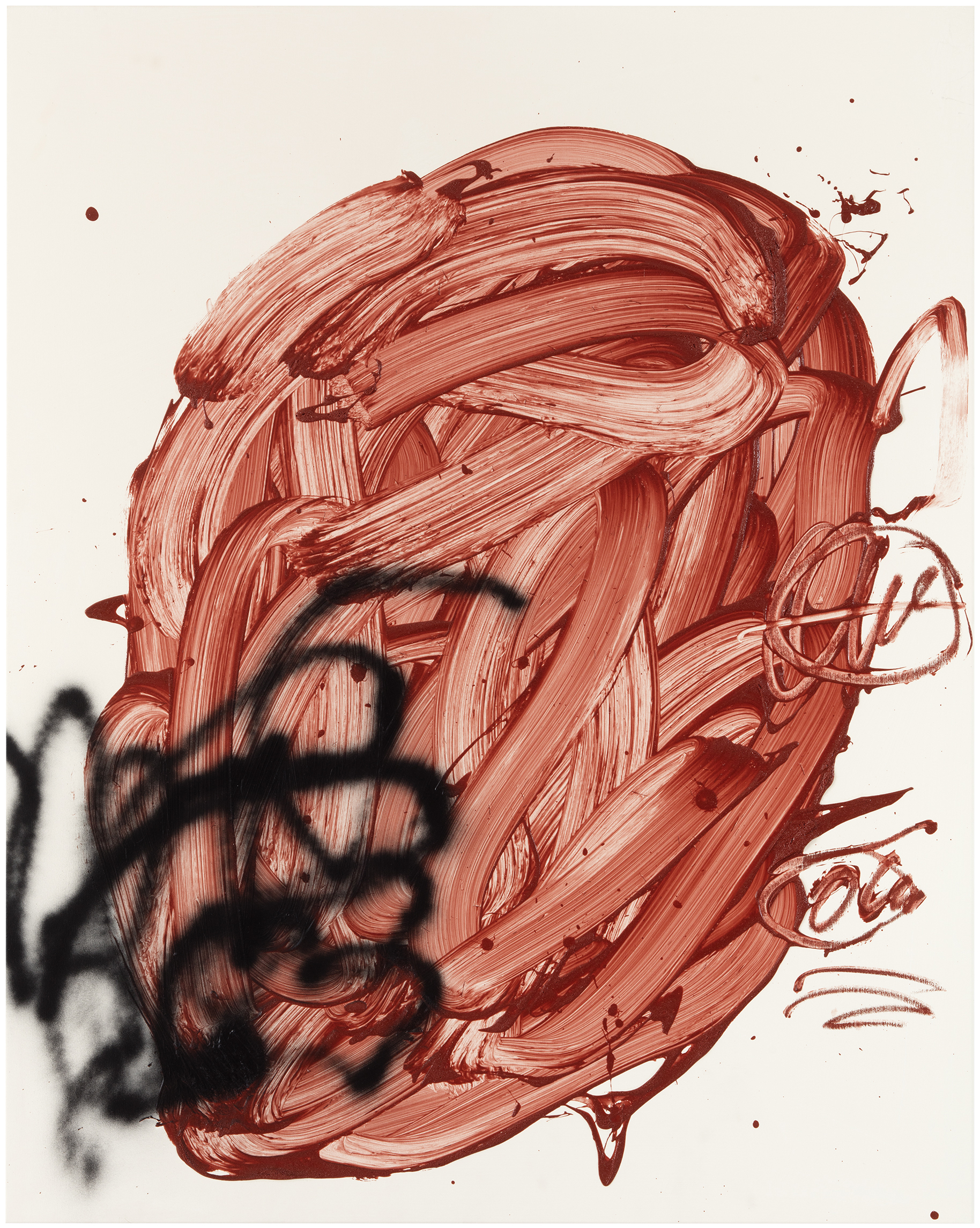 spray paint, acrylic, oil and oil pastel on canvas, framed