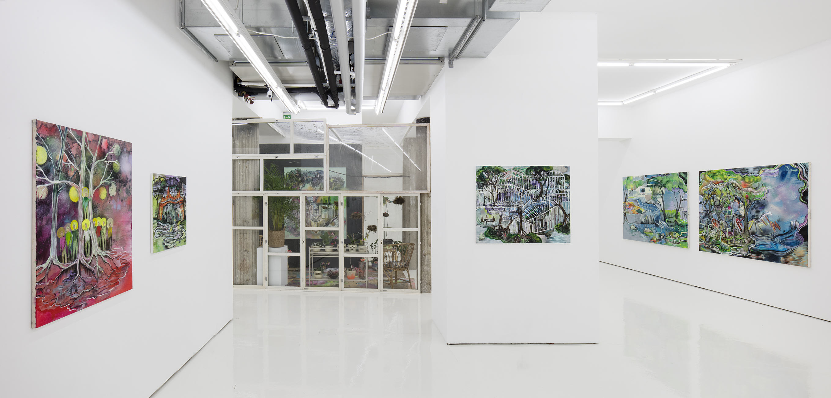 During 3 November–3 December, Helsinki Contemporary is hosting Maiju Salmenkivi’s Happy Garden exhibition – the colour saturation and fantasy worlds of her works illuminate the grey scene of November. In the paintings, tree houses like labyrinths are built into dense forests, and the water element is part of the original impression of many works. The worlds of the paintings are spread into the gallery space also in the form of a three-dimensional installation. In addition, Salmenkivi will present, for the very first time, ink and watercolour works made on paper.