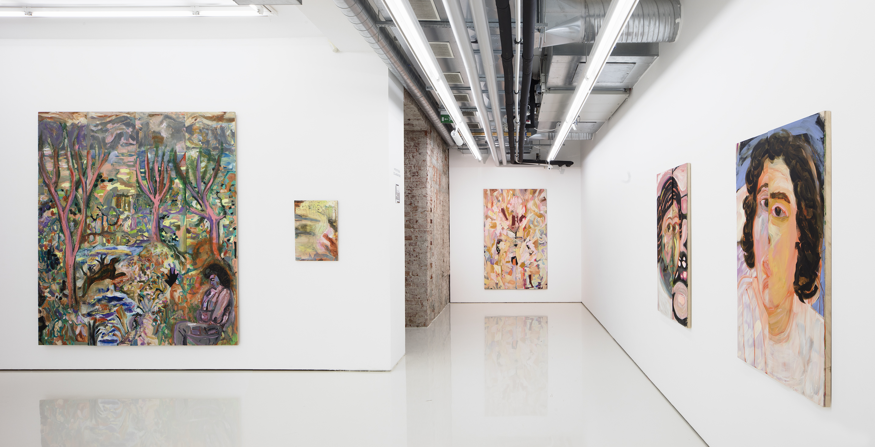 Camilla Vuorenmaa’s (b. 1979 in Tampere, Finland) solo exhibition I promised to come back for her birthday is based on the artist’s everyday fantasies and the meaningful action heroes of her youth. Vuorenmaa’s new works have been influenced by her role as a mother and the resulting contradictory feelings. Reading her teenage diaries also evoked memories. In the exhibition, stories and time are layered, the artist’s childhood fears and joys reflected on the now. “Painting, in the same way as life, can be frightening, and still, one wants to approach it.” In the end, it is a question of daring to let go, let the hand’s movement lead, anticipate.