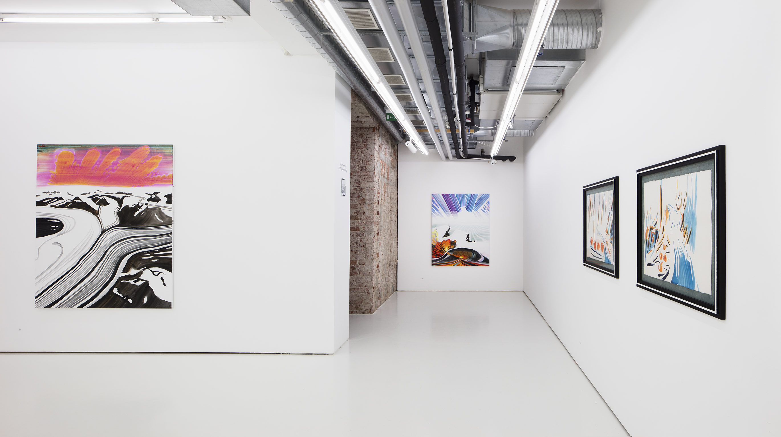 The visual trigger for the new works has been a series of photos of glaciers in South of Greenland in the 1980s, with pale blue and greyish colours. In reality ice contains the whole colour spectrum, we human only see it in certain lights. This colourful range is what the artist has explored in the new works.