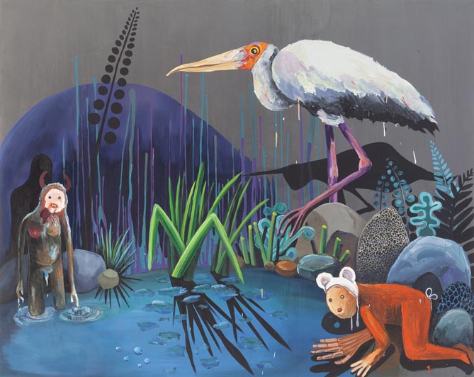 “When I mix these things, and the figure of a person is a mix of human and animal tendencies and features, it is impossible to step back and question, or to think whether this is realistic or representational. It turns into something different, something else. For me, it signifies the move from illustration towards doing a painting – and doing this with the means that are available for my type of painting.”