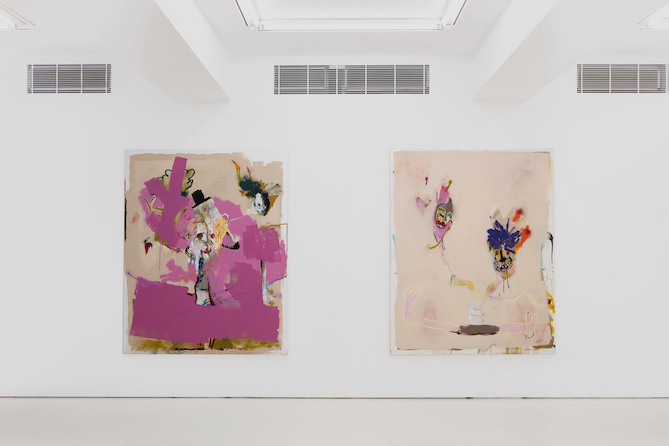 The paintings in On The Wall exhibition contain allusions to physical reality, such as mask-like faces, brick walls and vegetation. However, Mäenpää's main motivator for expression is internal emotion. Through painting, he illustrates things he observes around him and that people can relate to. Headhunter is a variation of a theme that recurs in Mäenpää's body of work. The title refers to the brutality of working life, the worship of talent, and the transient nature of human relationships. The mood varies from playful to serious. “Which direction it leans towards, I want to leave it for the viewer to decide. I try to make paintings that can be experienced in multiple ways, depending on the viewer’s own life situation, and even their social class.”