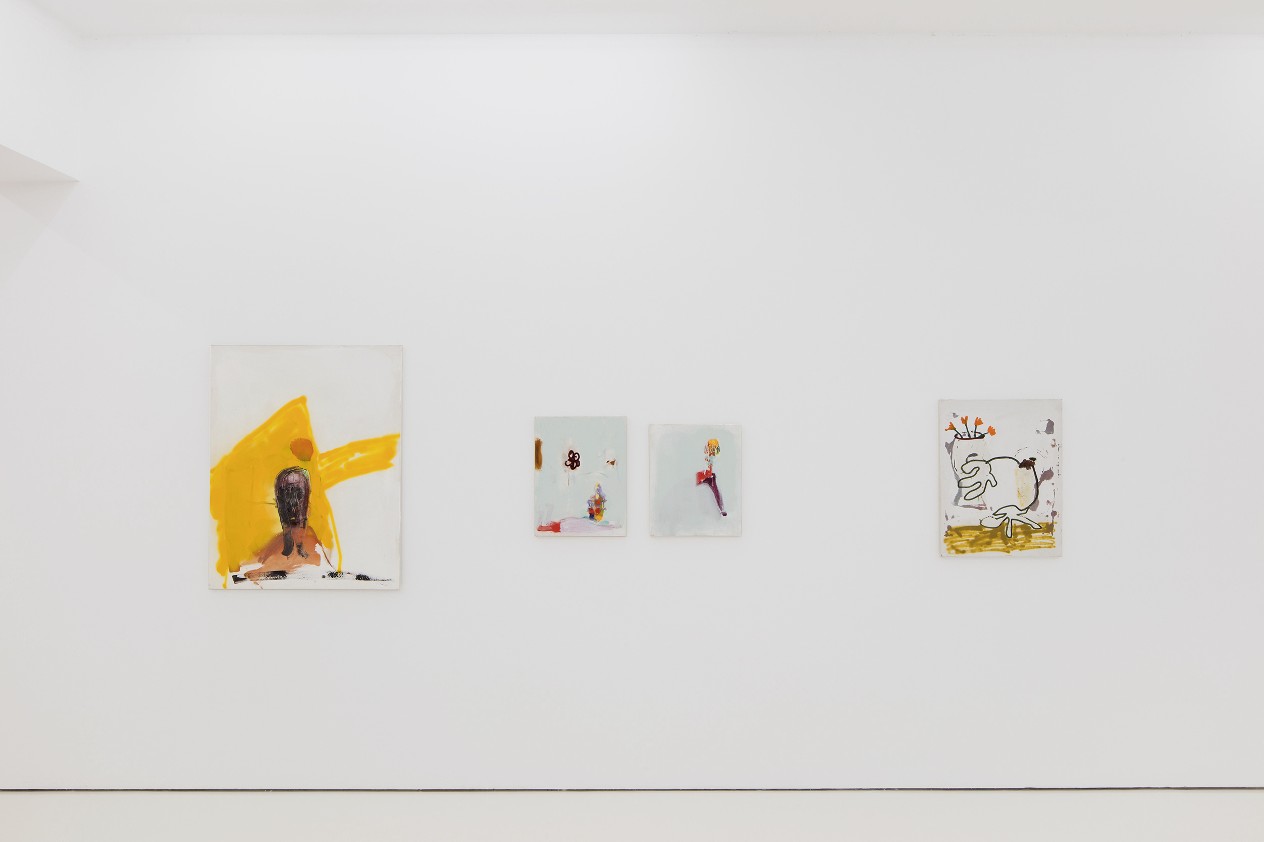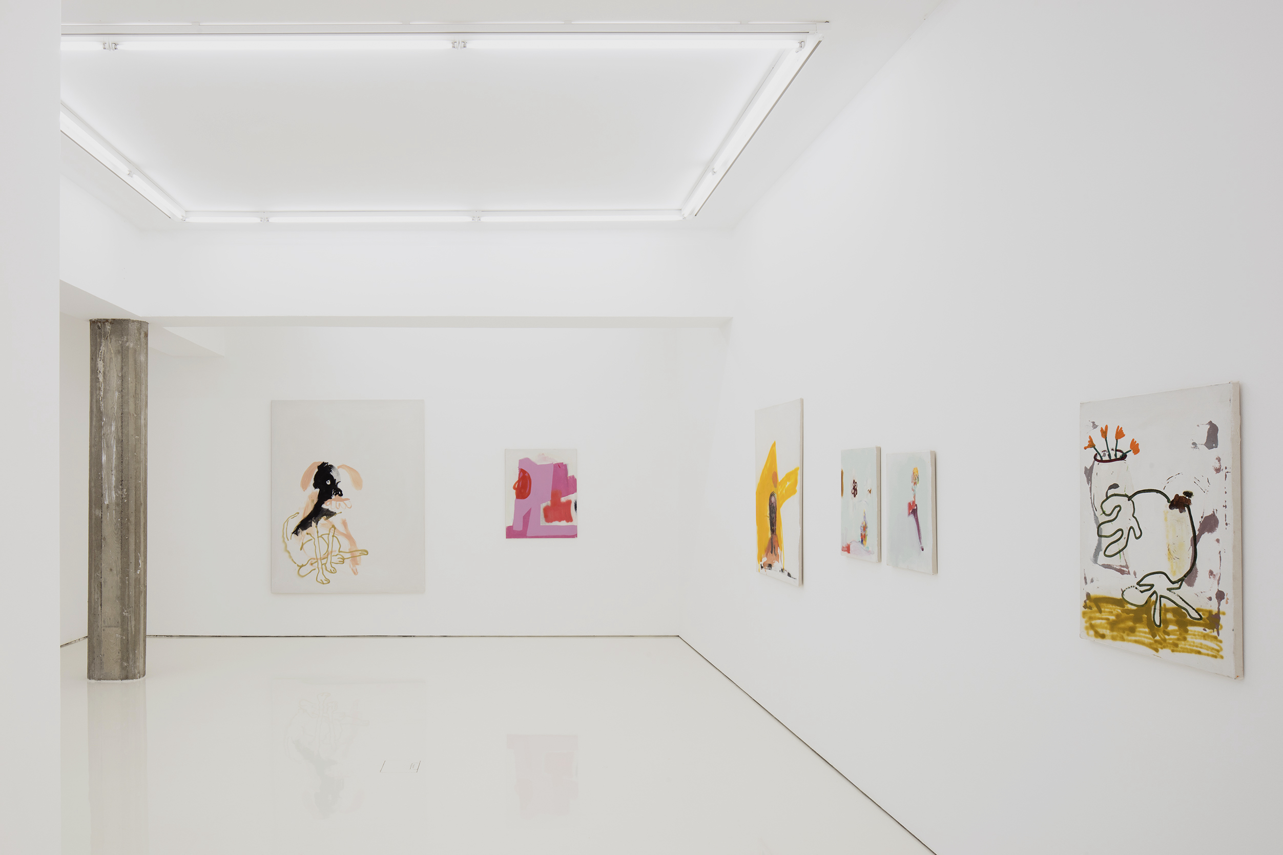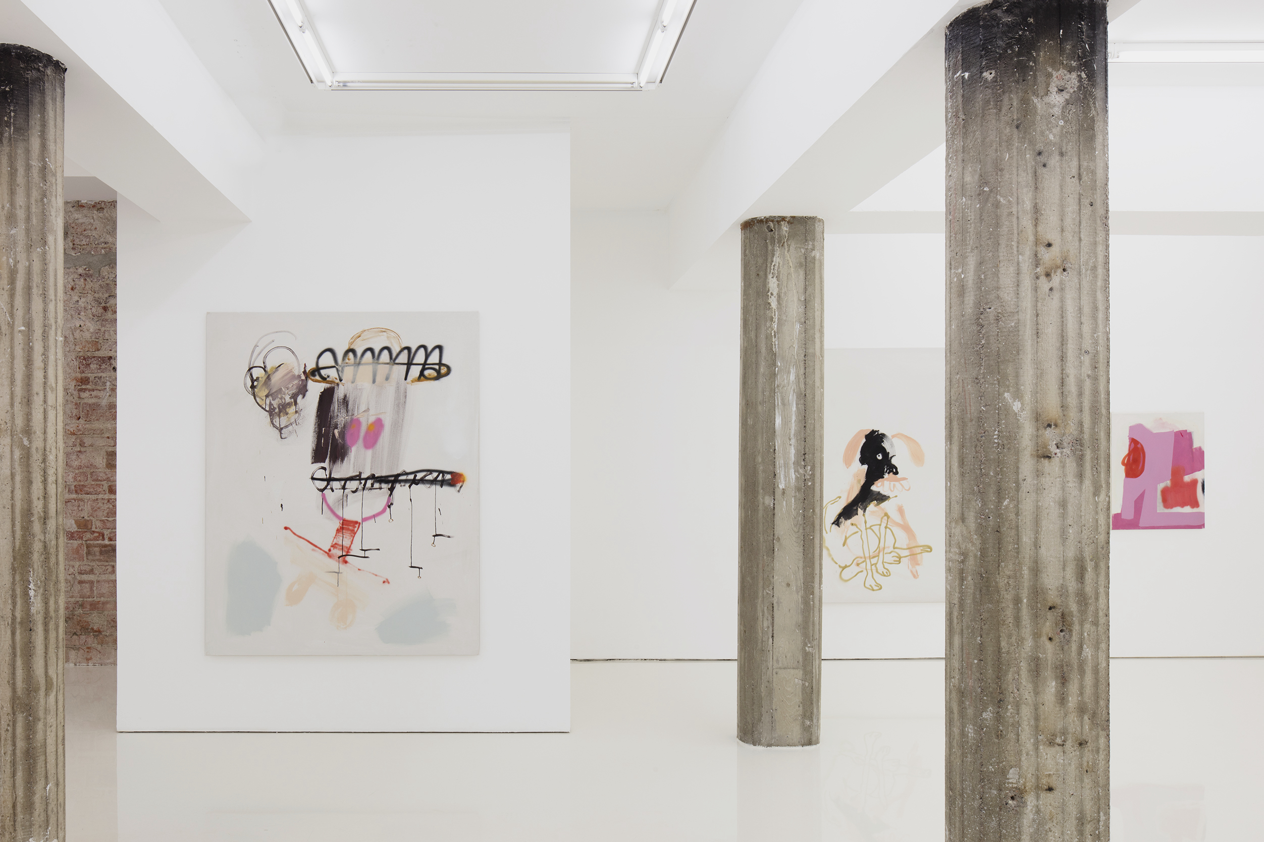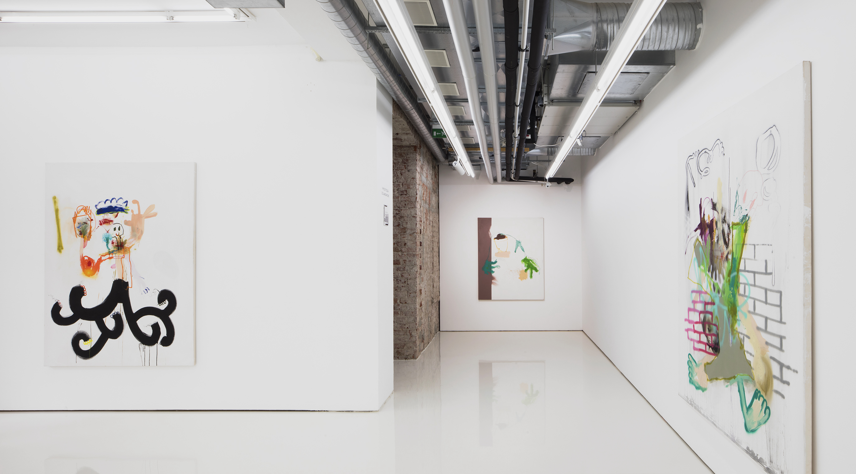 Spray-painted lines, drips and pastel drawings create contrasts on the surface of his oil paintings. Mäenpää makes open-ended use of the means of street-art to combine the disparate techniques. “I use oil pastels for their simplicity and specifically for the “honest” marks that result from drawing. I’m happy to use anything that comes to hand, as long as it serves the work.” The unconstrained use of colour and the bold approach to painting stem from Mäenpää’s background as a graffiti artist. The spontaneity and ephemerality of graffiti are still there in his spacious compositions framed by light backgrounds.
