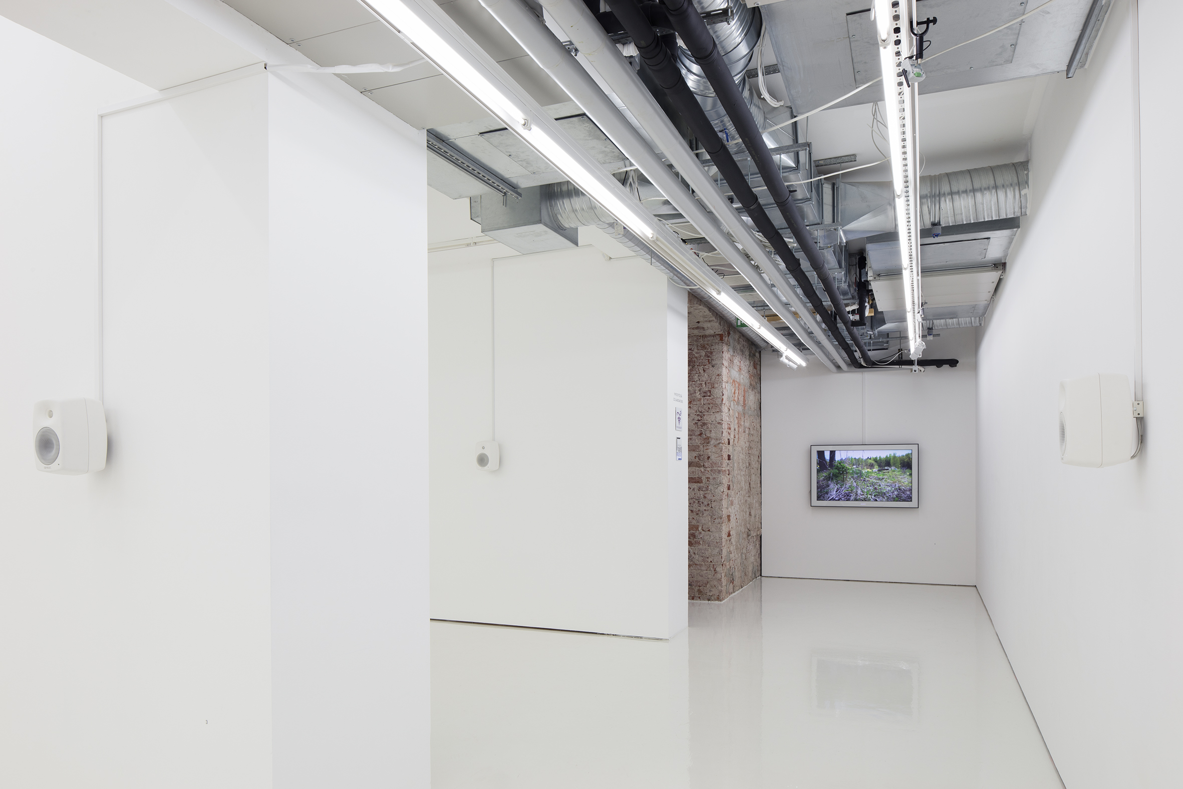 The front space of the Gallery is taken over by a video installation, Passing By, which shows footage shot by Lounila during travels; from car, metro and train windows, in the desert, in natural parks, forest roads. The archive, which fills the memories of cameras and phones, born from the need to immortalize unique experiences, has been created over the past few decades. The material exists for no purpose – accumulated due to an undefined need to record the environment “just in case”. The viewer watches the picture archive like a moving wallpaper or an endless road movie.