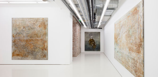 For the artist, the title of the exhibition, Remembering Forwards, refers to the human ability to be aware of the effect of the past on the future. Intertwined layers of time are present in the works, existing interdependent of each other: past in their own time, past in the present, and past in the future. Vaskola’s paintings can be compared to the works of the Nobel author Patrick Modiano (e.g. Villa Triste, 1977; Quartier perdu, 1984), which employ a laconic, highly reductive narrative to deal with the past and the time gone by, and with their influence on and relationship with our way of being present in this moment. More important than details and concrete events are state of mind, relativity and subtle atmosphere.