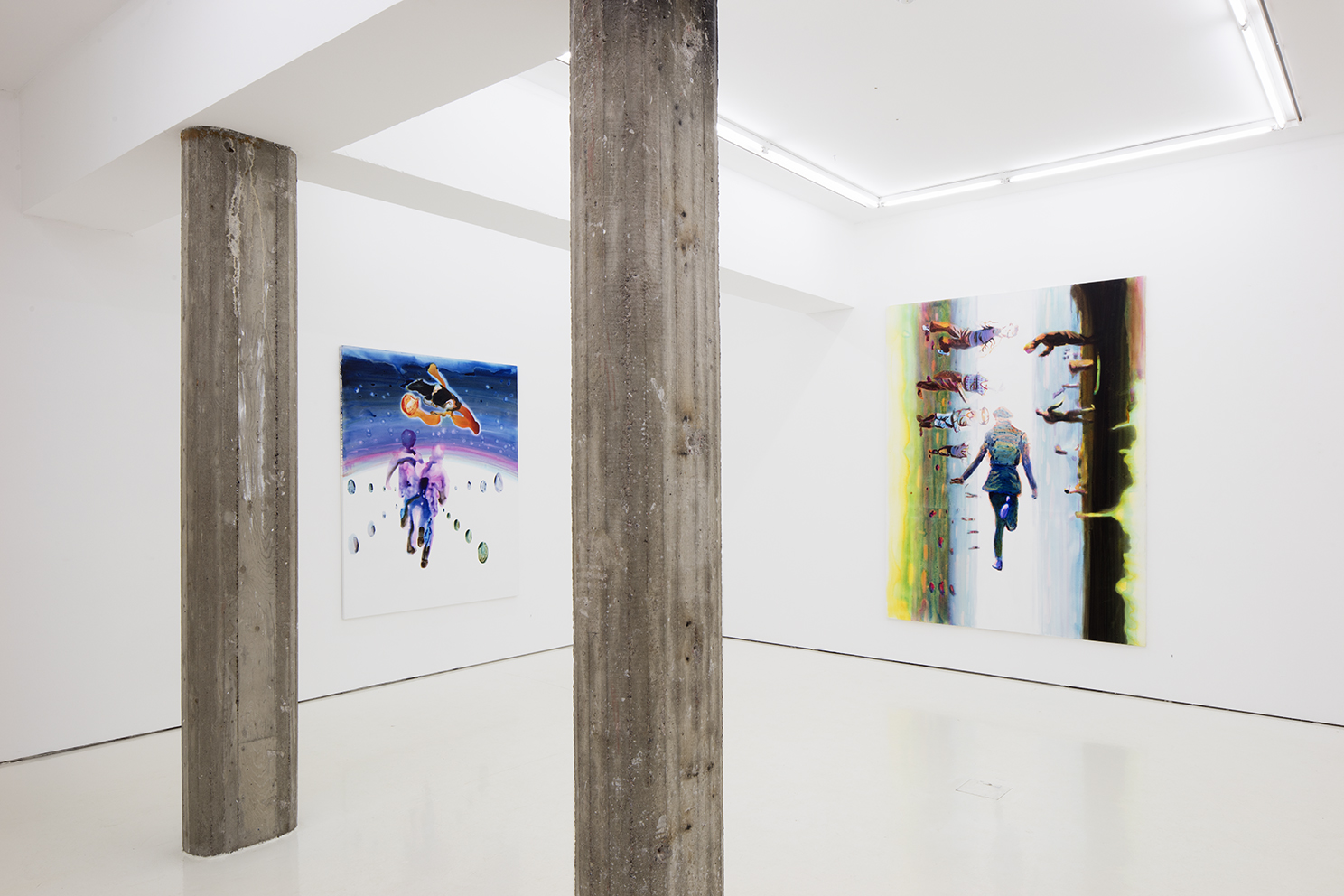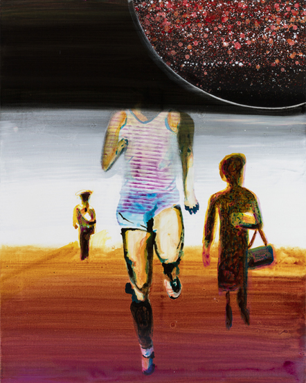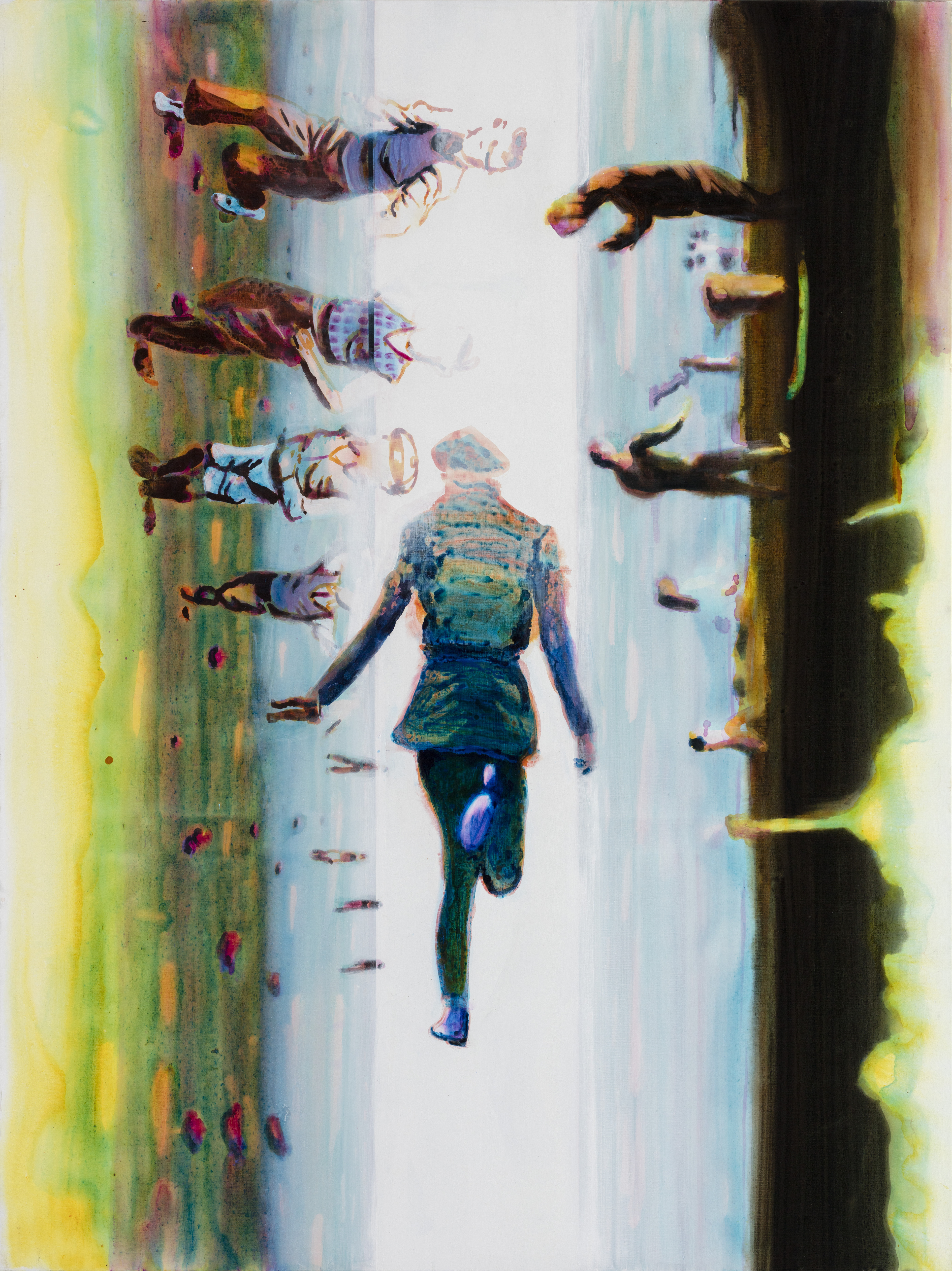 The figures in the paintings are in motion. They are moving towards – or running away from – some undefined place or space, or taking a step from one state to another. Figures on the move are key for Kørner’s paintings. Moving is part of the essence of being human, it is in the end how we grasp our surroundings and our own reality.