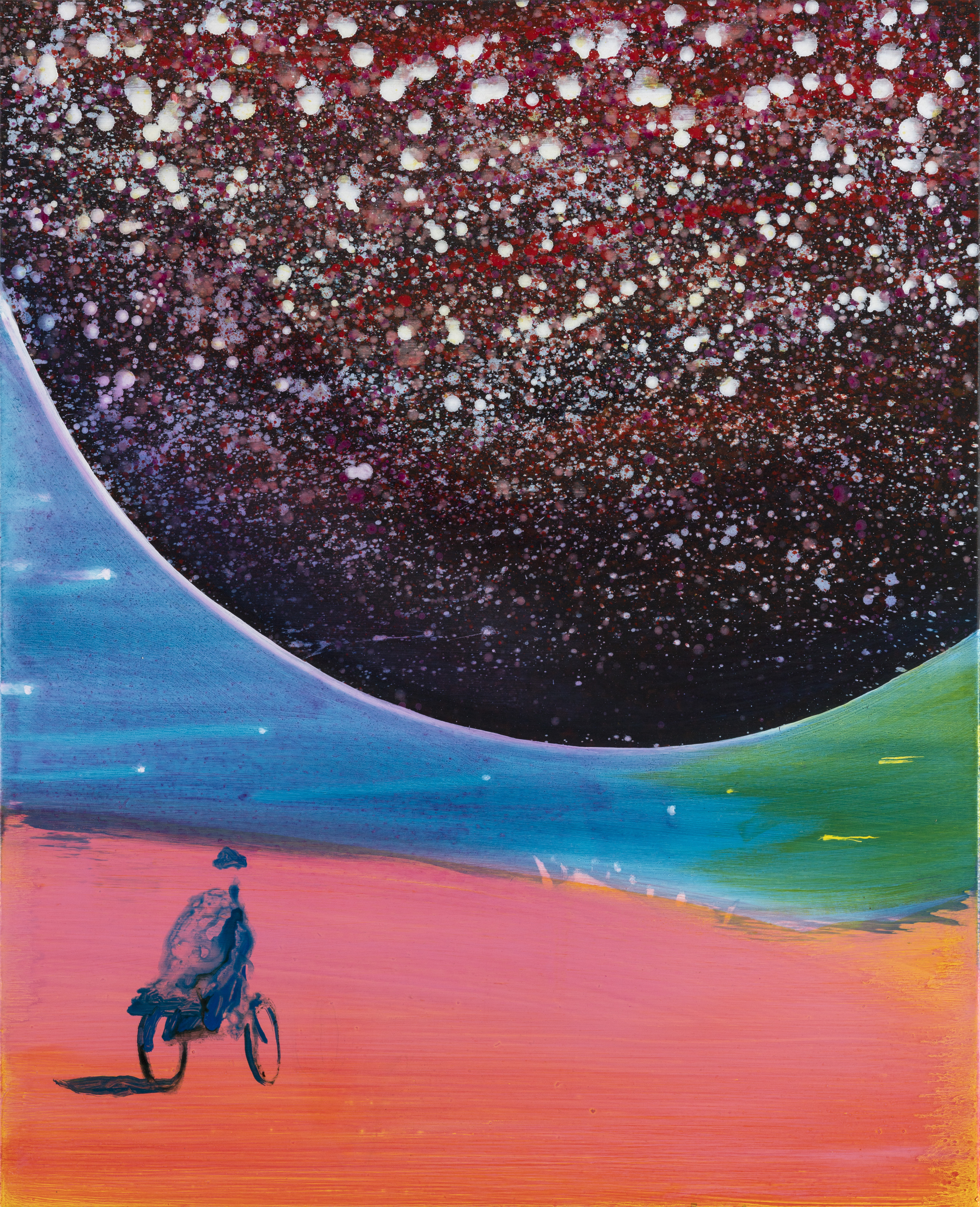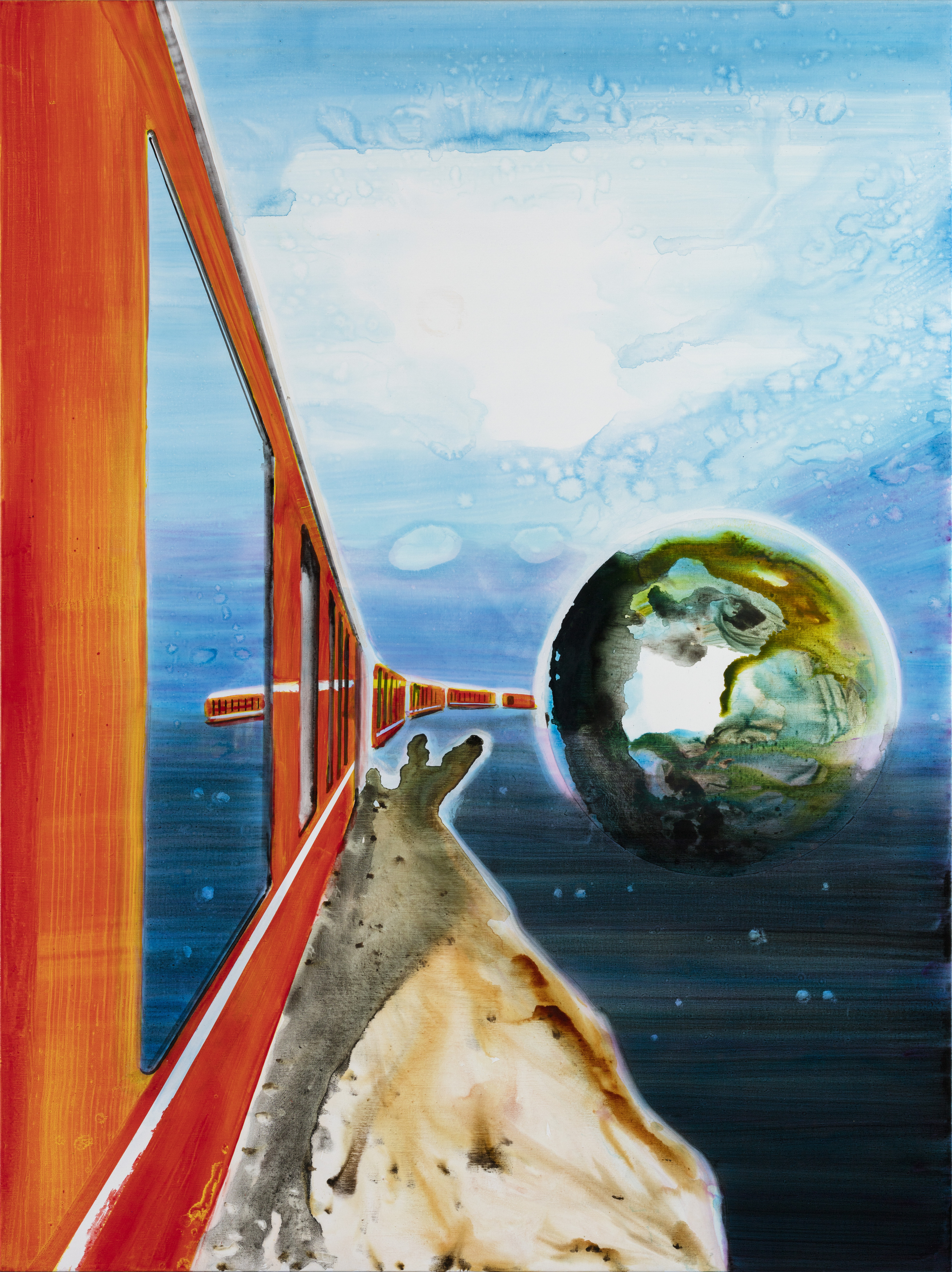 In his show at Helsinki Contemporary Kørner will focus on a series of new paintings in which he has explored a world beyond ours. We are presented with vistas of outer space and planets. In some cases a glimpse of the earth reveals the viewpoint, but in others the artists leaves the position unclear. The motif might just be from a different reality; a space that we do not know exists.