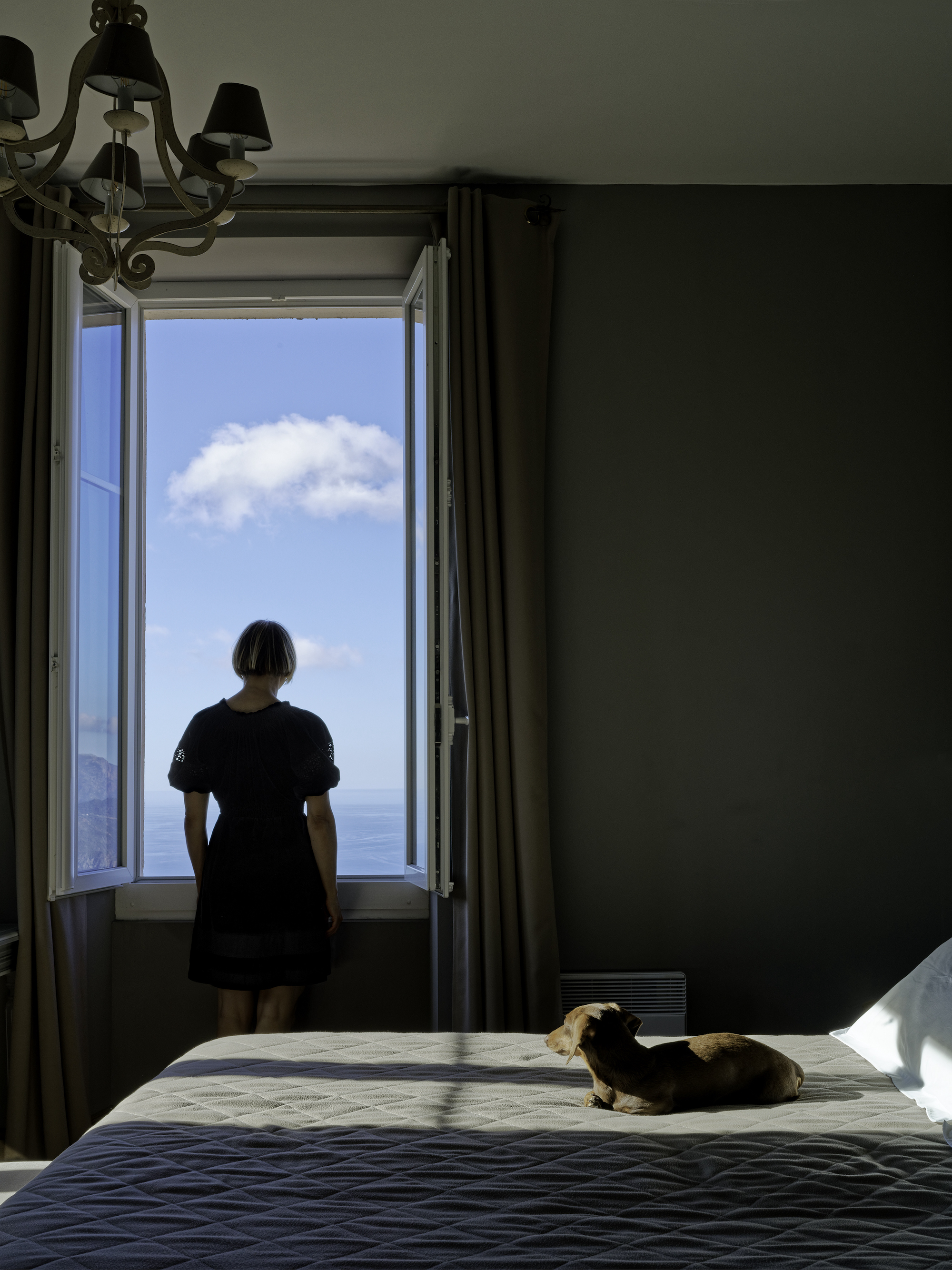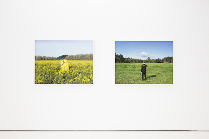 Brotherus’ attraction to the art of the Belgian René Magritte (1898–1967) has lasted the longest. She already delved deep into the surrealist artist’s production when she was young and living in Brussels, on visits to museums there. At that time, she was particularly interested in the history of old art, but also in the various possibilities of the photograph. “Surrealism reminds us of the complexity of things. It is a poetic way of saying we don’t understand everything.” Brotherus was particularly inspired by Magritte’s ideas. In the exhibition familiar symbols from Magritte’s paintings come to life, interpreted by Brotherus. A mirror in the middle of a field punches a hole through the landscape, and a hotel-room window as if opens onto another reality. Ordinary issues and objects find a place in surprising settings. “Magritte has his own vocabulary. If I take a picture with a cloud, or an umbrella, I inevitably cast my mind back to Magritte.”