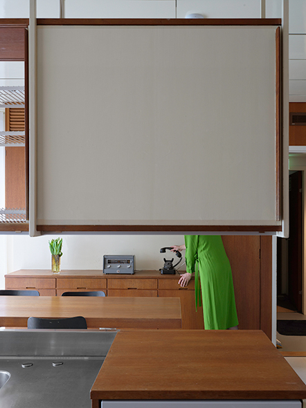 Four works from the Visitor (Villa Didrichsen) series that Brotherus shot at the Didrichsen Art Museum in 2021–2022 are being shown as part of the Helsinki Contemporary exhibition. The starting point for these images was the freedom to work with an entire art collection, while making use of the building’s architecture and interiors. The figures in the pictures – the visitors – bring the space to life with their presence, suggesting alternative realities alongside the actual history of this building designed by Viljo Revell (1958, 1964). At Didrichsen, Brotherus, who is known as a colourist, got to be curator of her own pictures. She was able to pick out paintings from the Museum’s collections, for instance, to match the colours of her compositions.