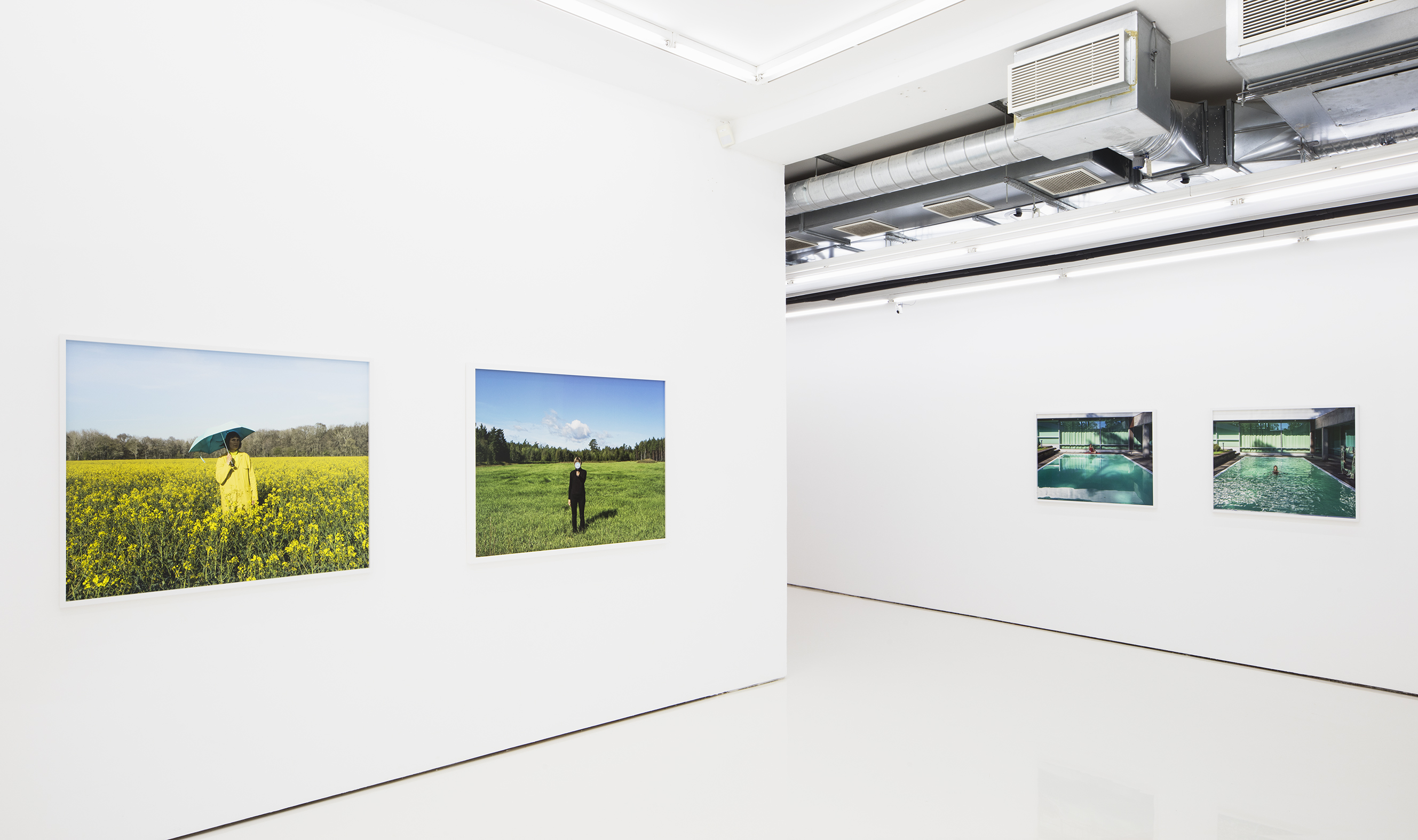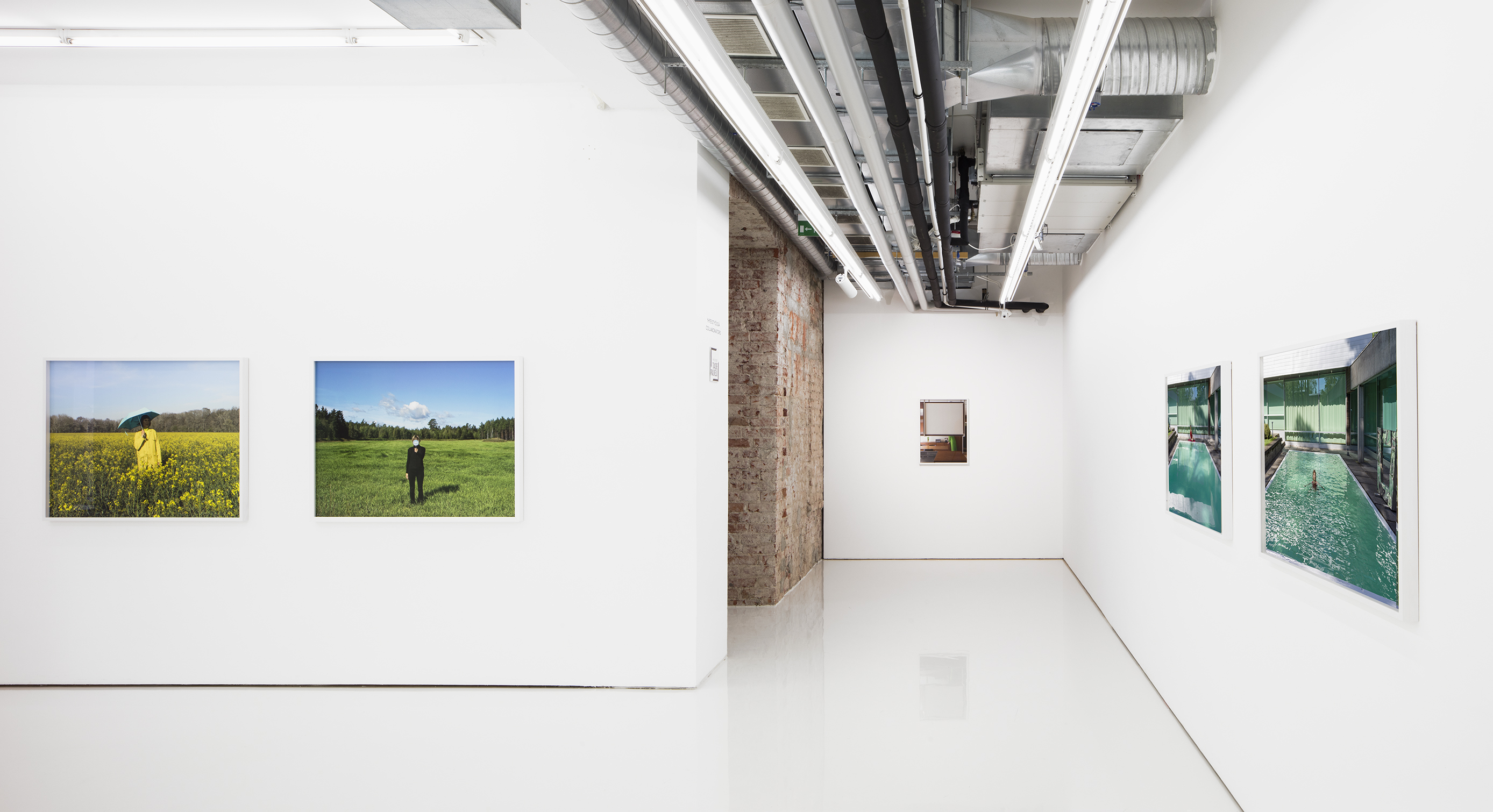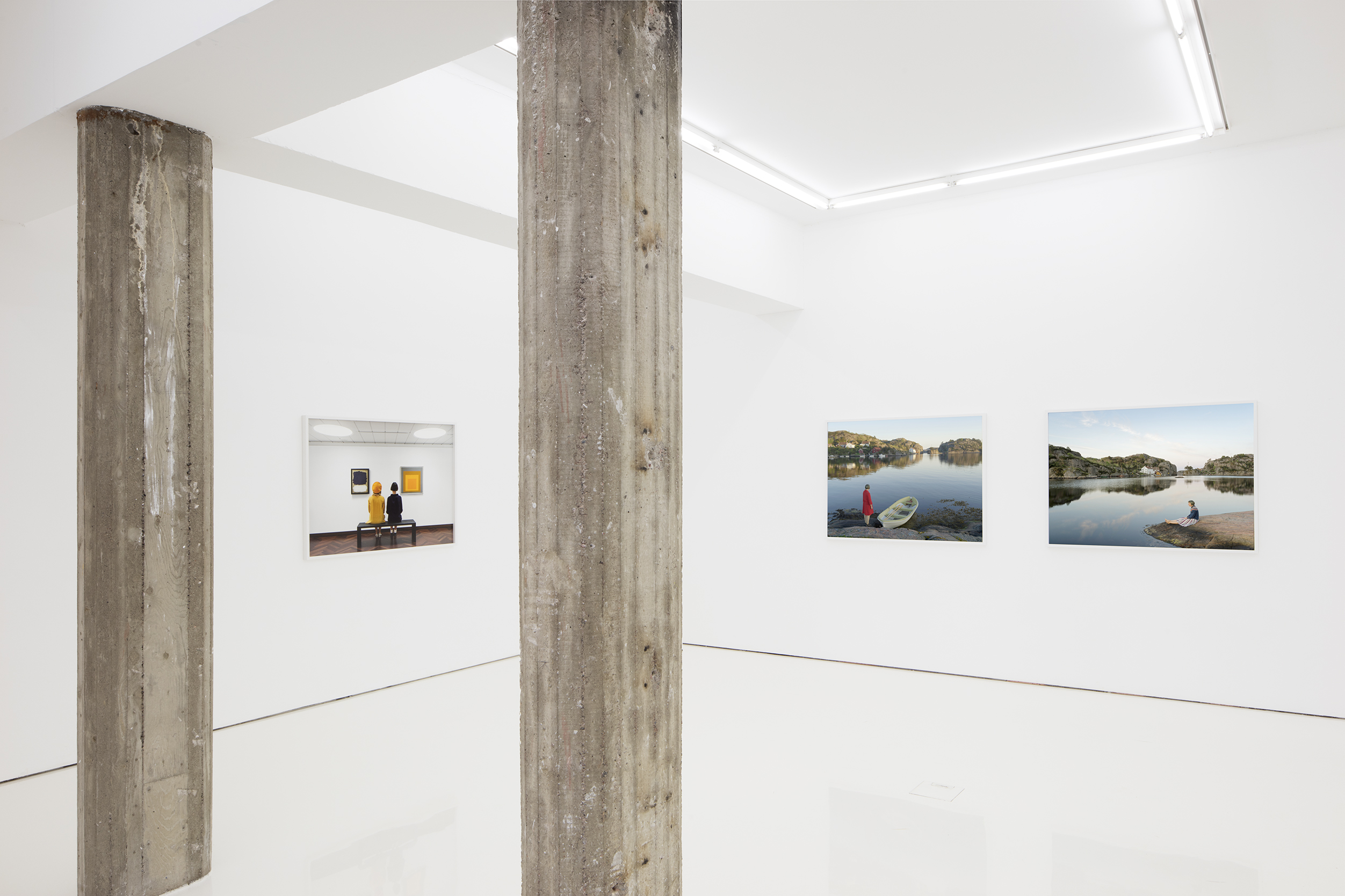 Spaces and Places is a combination of outdoor and indoor spaces, of gazes at and away from. In the pictures in the exhibition Brotherus takes up a position in space that is always relative to the surroundings and the landscape, but also to art history. The dialogue with these paintings or with the texts made by deceased artists becomes visible. The pictures are events, but at the same time they are spaces in which a friendship is enacted. Through them the connection to someone else who is personally important is made real. “Artists need other artists. We have teachers from our student days, and later on self-chosen ones, to offer us a helping hand. Connections, chains, affinities and friendships are important. They are places where art is thought about and enthused about.”