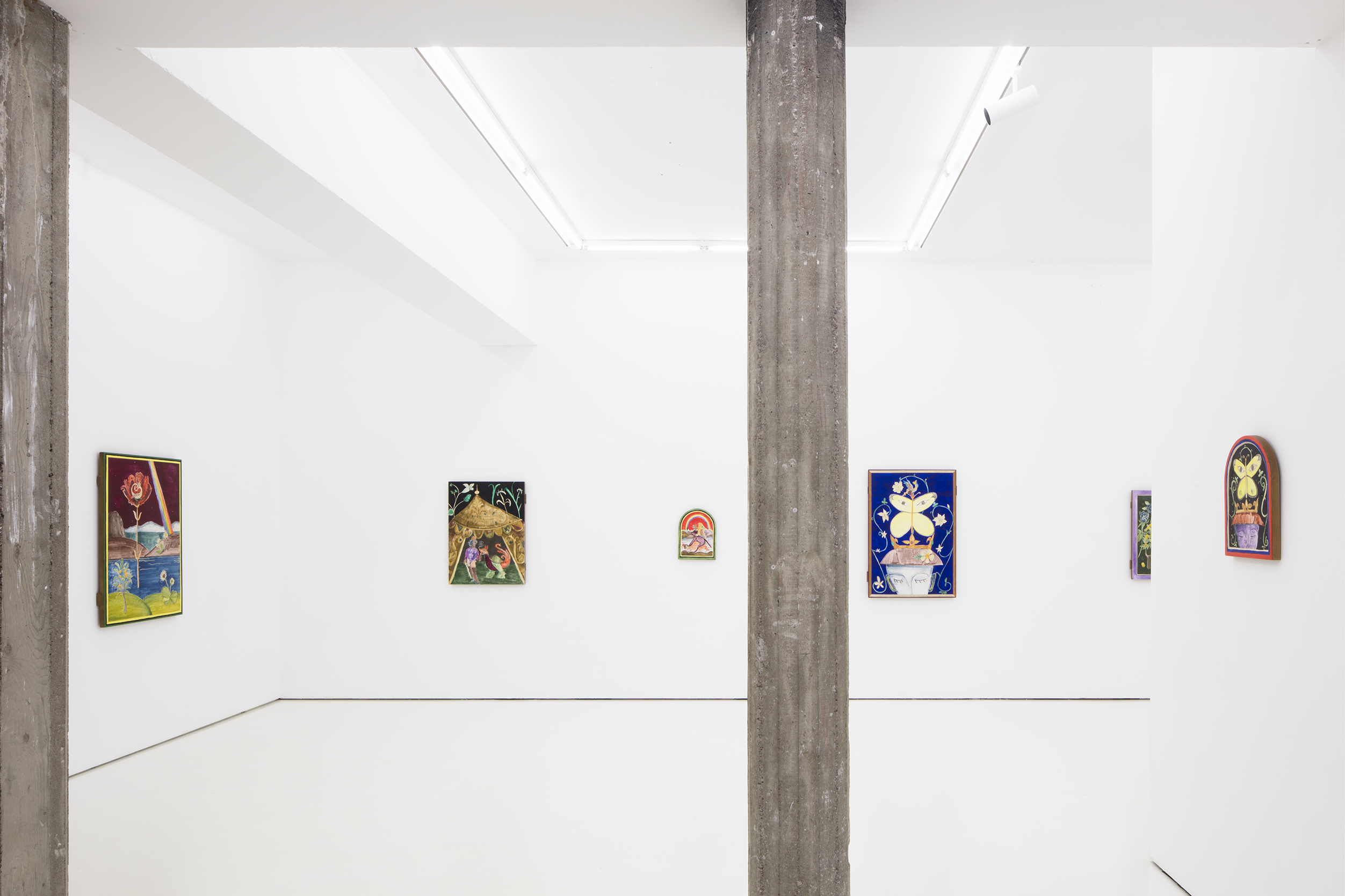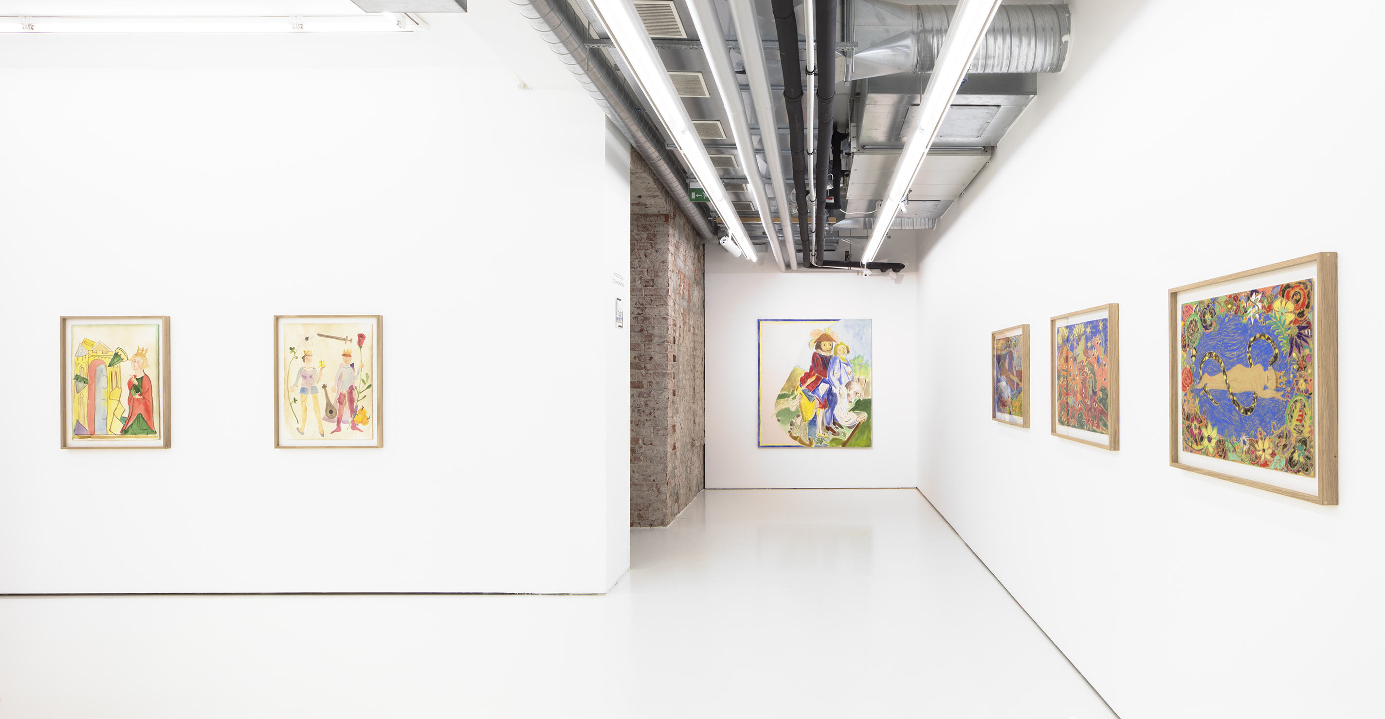 Mastering and developing different methods is typical of Turunen as an artist. Switching media plays a major role in the creative process: this shift means the work in the making goes from the realm of consciousness and control to being solved by intuition. Eight tempera paintings on wood form the backbone of the The Dragon Tamer exhibition. This method demands planning: the basis for the painting is a drawing, instead of its point of departure being paint. The painting process involves rituals and symbols. This technique gave Turunen access to a previously unexperienced terrain of pigments: the startling shades of the new works, such as azurite, shungite, mineral blue and vagone green, come into their full glory in the gallery space. This series of works is complemented by dry-pastel drawings made ‘alla prima’, by lush oil paintings, and also by watercolours that are intimate in their narrative, executed using paper dyed with tea according to the Japanese tradition. Watercolour as a medium is closest to the world of medieval manuscripts, like a deep dive into the nature of paper.
