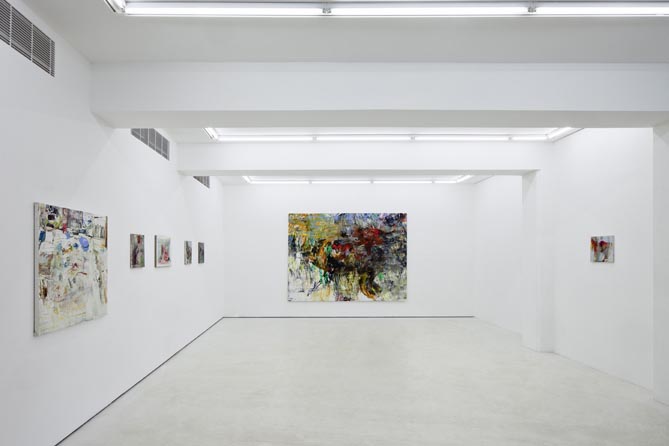 The end result is a unique series of paintings that challenge the viewer on multiple fronts: with their size, with their context, and also with the physicality of the marks of the brush. The paintings mirror movement and closeness, and the cycle and echoing impacts of effort, reflection and looking.