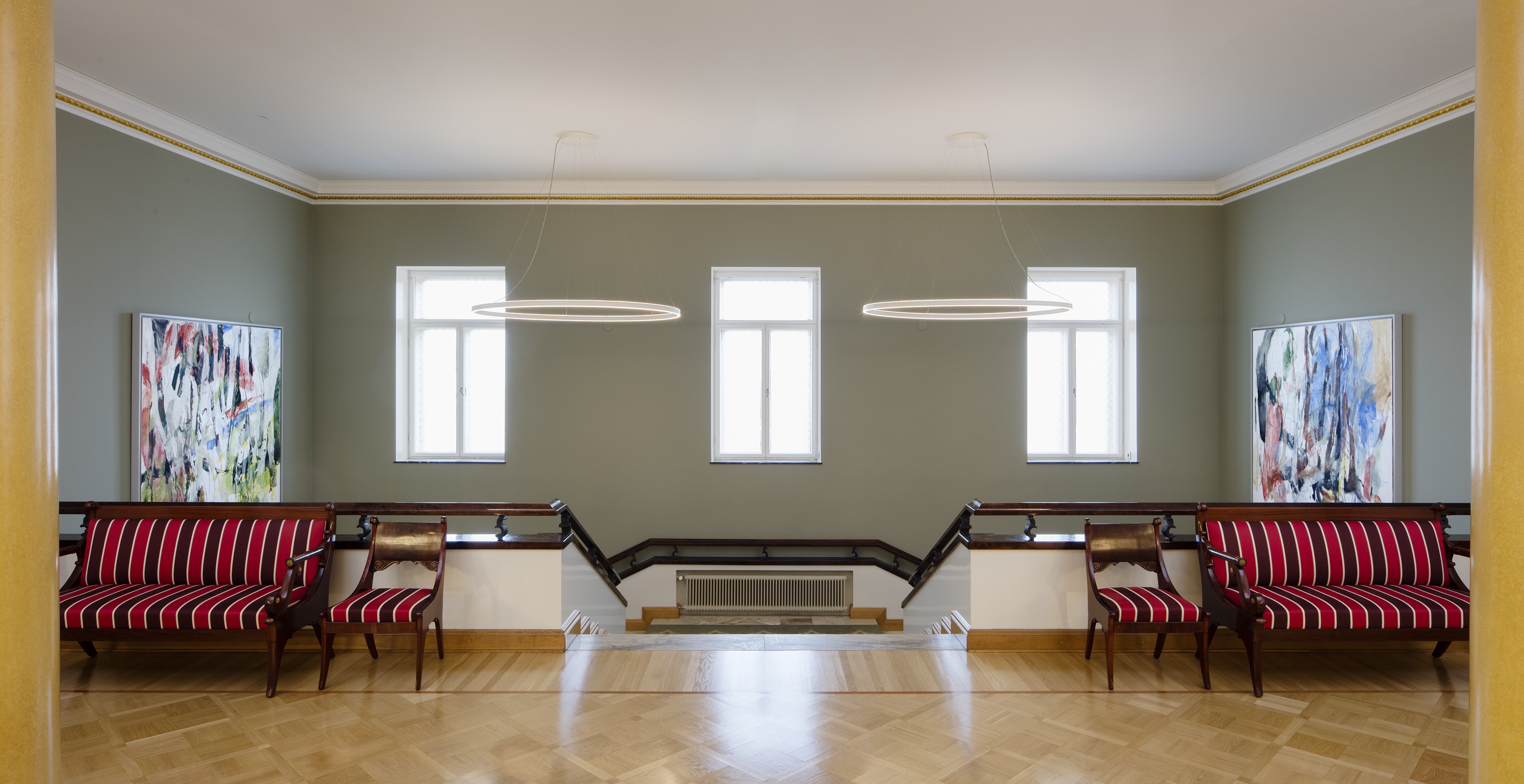 The Alfred Kordelin Foundation will deposit the two works in the Palace, and they will be situated in the monumental stairway on Mariankatu's side of the building and unites the stairway built in the 1930s to the part of the building built in 1907 to form an interesting visual whole.