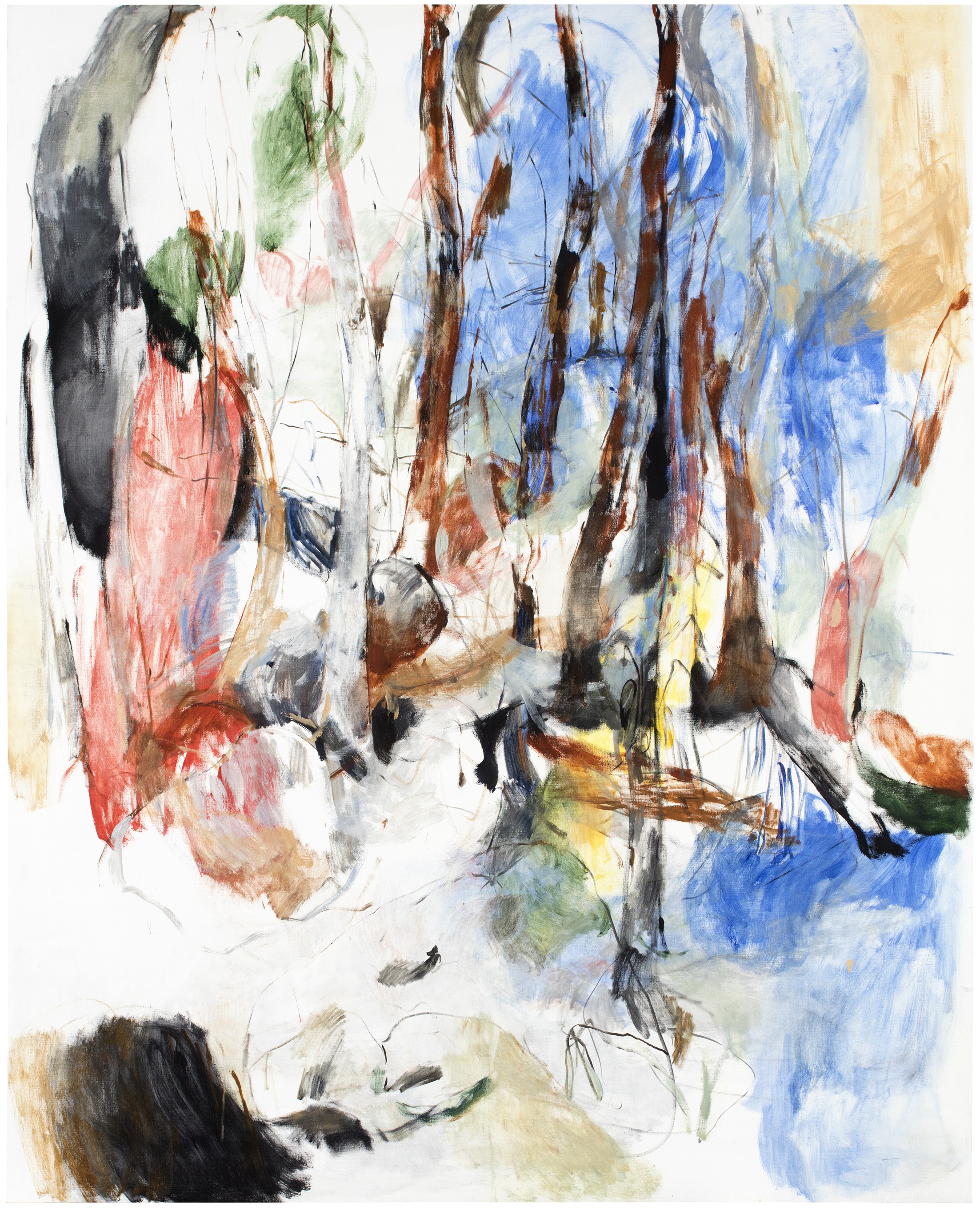 Kaksi polkua consists of two large oil paintings, situates at opposites sides of the stairway. The works are in a dynamic dialogue with each other, and convey the experience of moving in nature; of immersing into it.