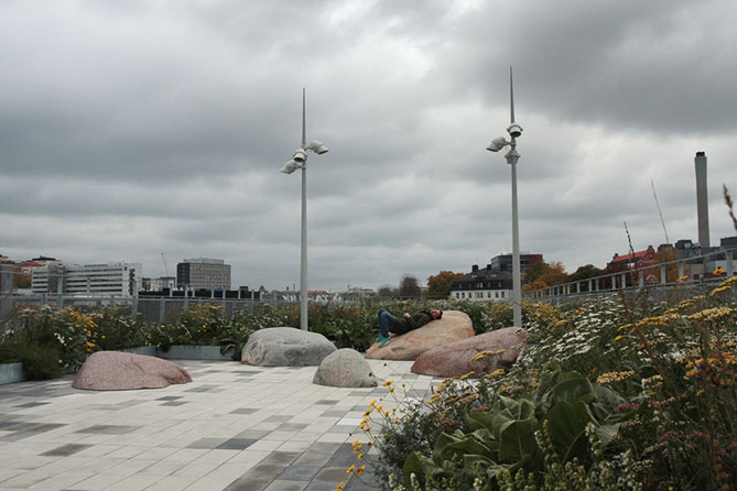 2066, the most recent work by Hans Rosenström, contemplates on how the world will be like in 50 years. The public sound installation is located on the roof top terrace of the new ferry terminal Värtahamnen in Stockholm. For the sound piece, professionals from different fields were asked to ponder and tell their vision about how the world will be like in 2066. The work with transducer speakers built inside granite boulders can be listened through bone conduction while lying on the stone, what fells a bit like listening to ones own thoughts. Public work becomes intimate. ”The reason why I concentrated on exploring the future was simple: we are living in a time where the future seems intimidating, it might be that the future is not something where all the problems can be solved but we’ll face a crisis after another… However simultaneously technological and medical revolutions are many and continuous. I wanted to map how people from different professional perspectives perceive the future. What do they believe in.”