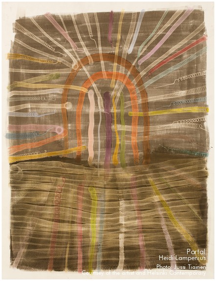 HEIDI LAMPENIUS works with inks and acrylic on canvas. She creates the subjects and patterns in her works by removing paint with water. Lampenius approaches her subject, on the one hand, by studying and reading maths and physics theories in relation to the environment, time and existence, and, on the other hand, by painting the landscape she knows and experiences.