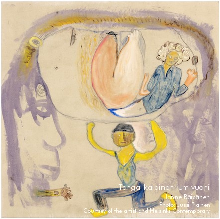 Janne Räisänen is a painter who constantly shifts between canvas and paper. This movement is reflected in the ways in which the work is displayed. His drawings and paintings show and comment on the daily lives of human beings in warm-hearted, humorous and, not to forget, weird ways. Räisänen’s solo exhibition at Schwarz Contemporary, Berlin is on view till April 13. He is currently also showing in Stadstgalerie Kiel, as part of the exhibition An der Nordkante – Der Mensch in der finnischen Gegenwartskunst.